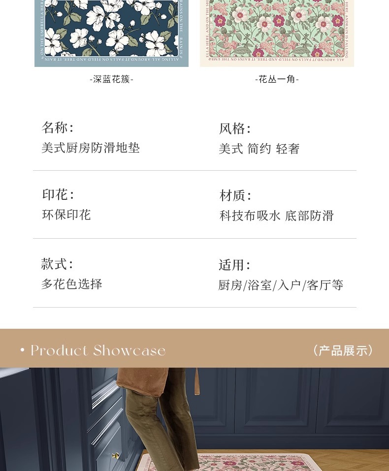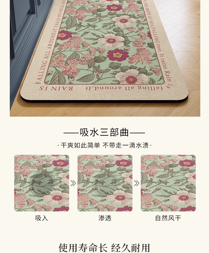 アメリカの花の台所のマット家庭用吸水吸油滑り止め速乾マットは汚れに強くて、珪藻泥のマットを処理しやすいです。