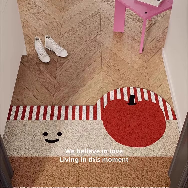 クリエイティブなアップル漫画の玄関フロアマット、ドアワイヤーリング、滑り止めフットマット、汚れ防止、洗濯不要の玄関ドアカーペット