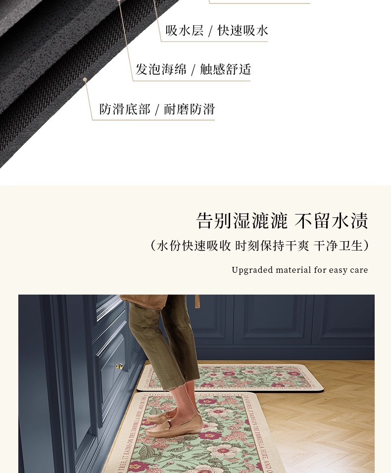 美式厨房专用地垫L形硅藻泥吸水防滑脚垫高端免洗可擦防油防脏垫