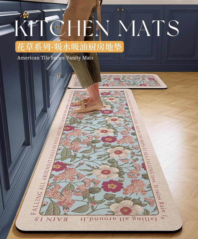 アメリカンキッチン専用フロアマット 珪藻泥 滑り止め・耐油 拭ける・洗えるフロアマット 汚れにくい・落下防止・お手入れ簡単カーペット