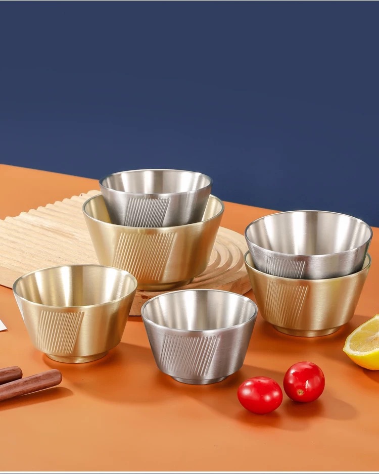 クロスボーダー 304 ステンレス鋼ボウルツイル二層火傷防止デザート砂糖水ボウルレストランライスボウル家庭用ツバメの巣スープボウル
