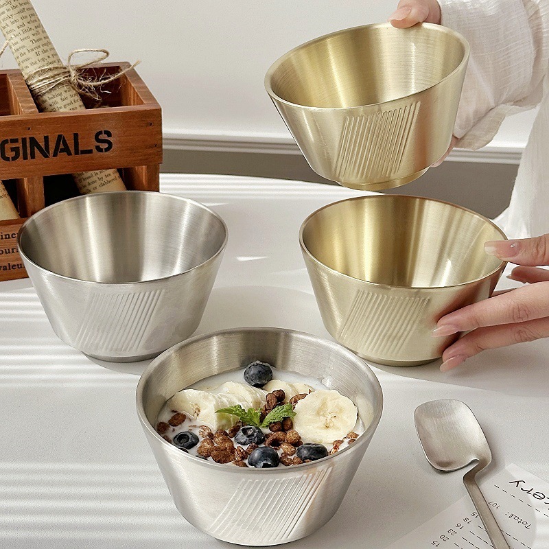 韓国式ins風ステンレスボウル304ご飯ボウル家庭用食事パーマ防止スープボウル高顔値デザートヨーグルトボウル