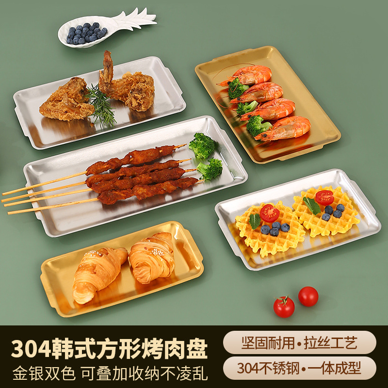 韓国式304ステンレス長方形焼肉皿業務用焼肉皿寿司皿金色トレー厚手収納皿