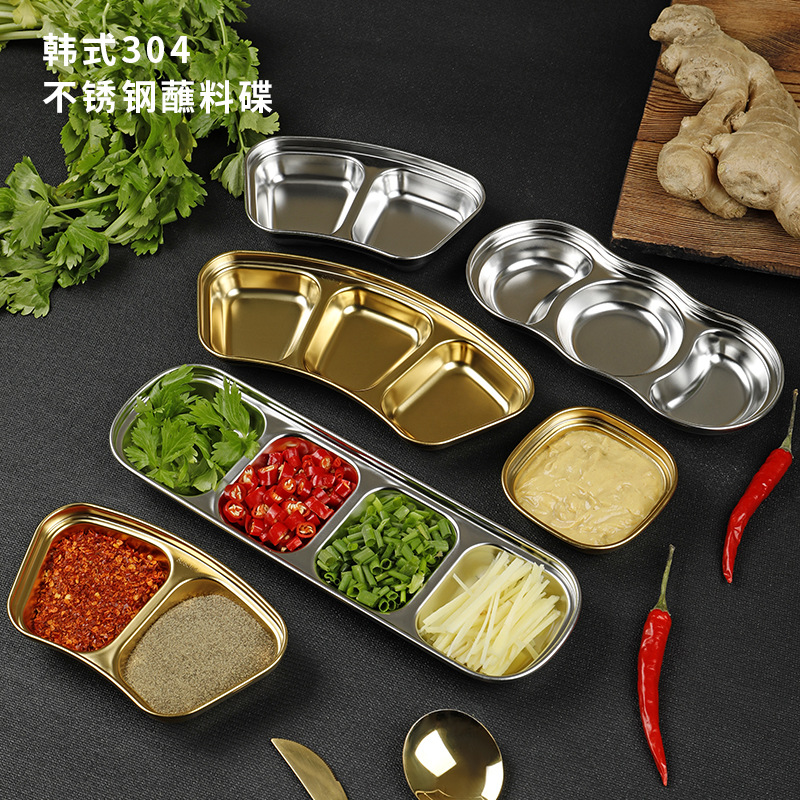 304ステンレスの韓国式のディップの業務用焼肉の食器の調味料の皿を分けます。