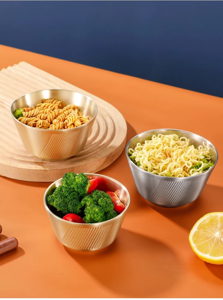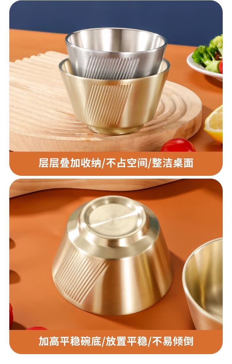 轻奢304不锈钢双层碗斜纹防烫米饭碗汤碗金色甜品糖水沙冰碗餐厅