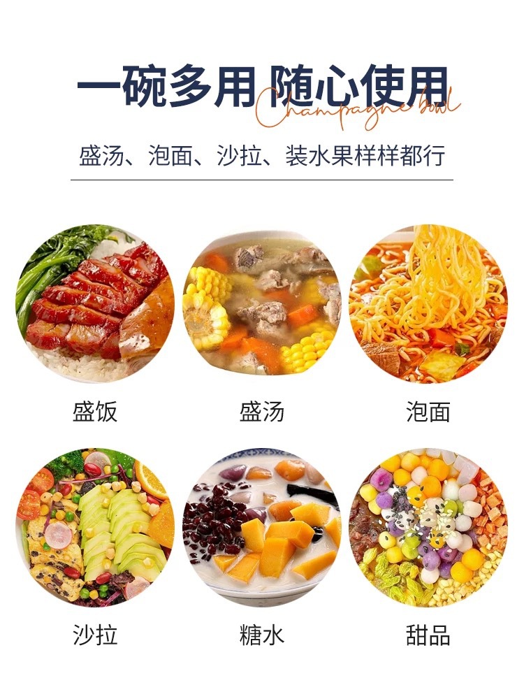 304不锈钢斜纹双层碗米饭碗金色香槟碗隔热防烫汤碗沙冰甜品碗