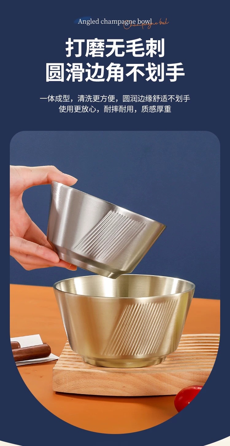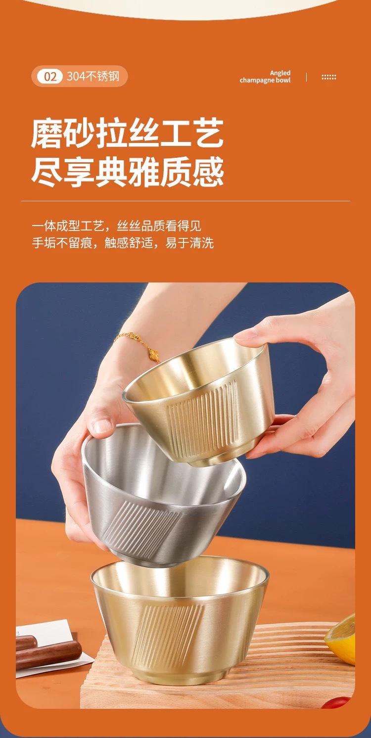 轩渤304不锈钢斜纹香槟碗高脚韩式米饭碗防烫双层碗汤碗ins甜品碗