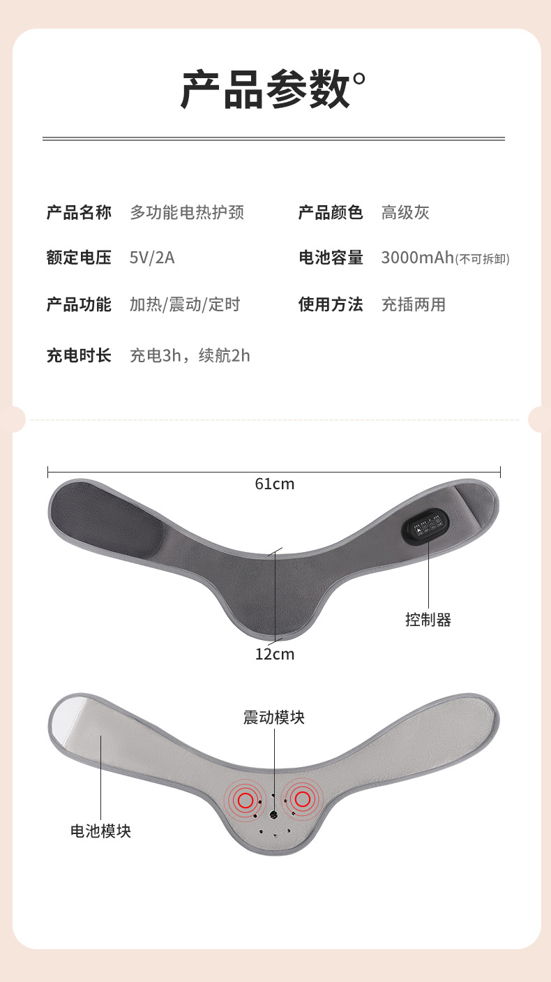 颜色分类 电热护颈(三档控温+三档定时+三档震动)两个艾绒片