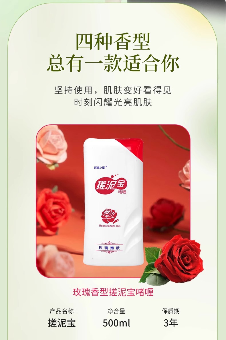 正品搓泥宝瓶装哆啦小屋500ml批发去角质嫩肤全身清洁搓澡泥批发