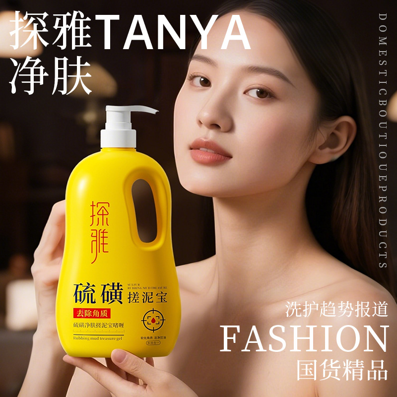 1L装硫磺净肤搓泥宝啫喱控油清洁除螨去角质止痒嫩肤搓澡泥沐浴露