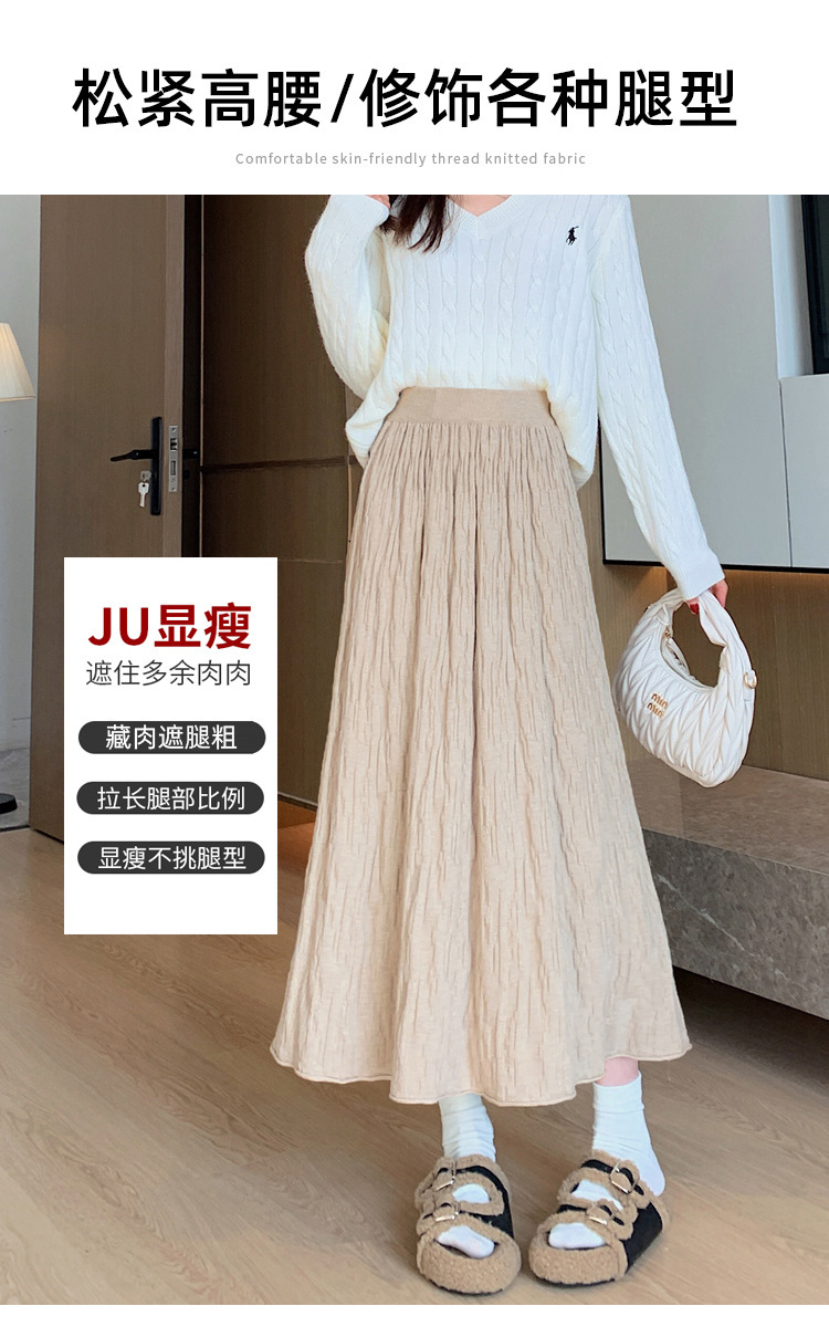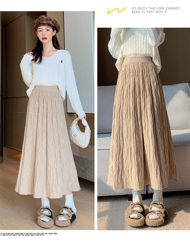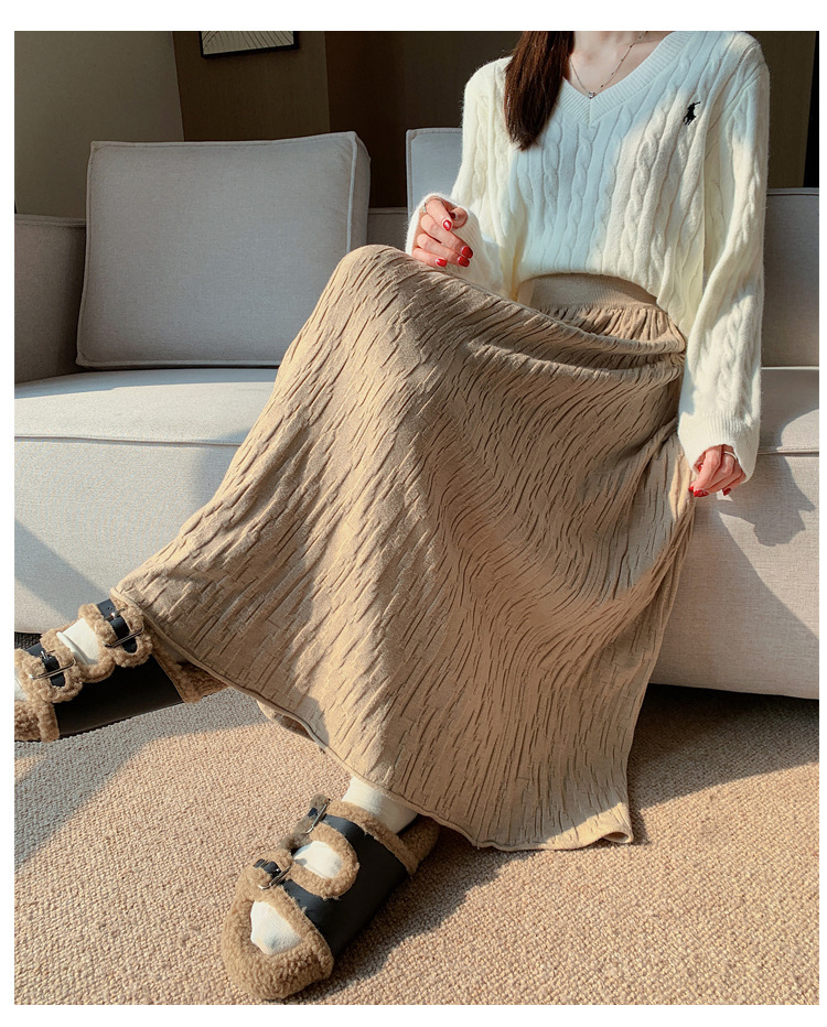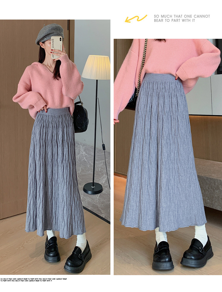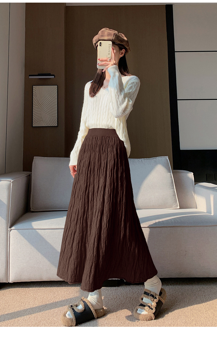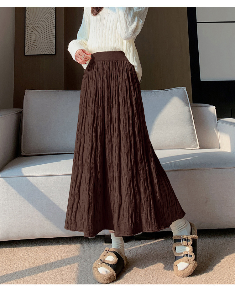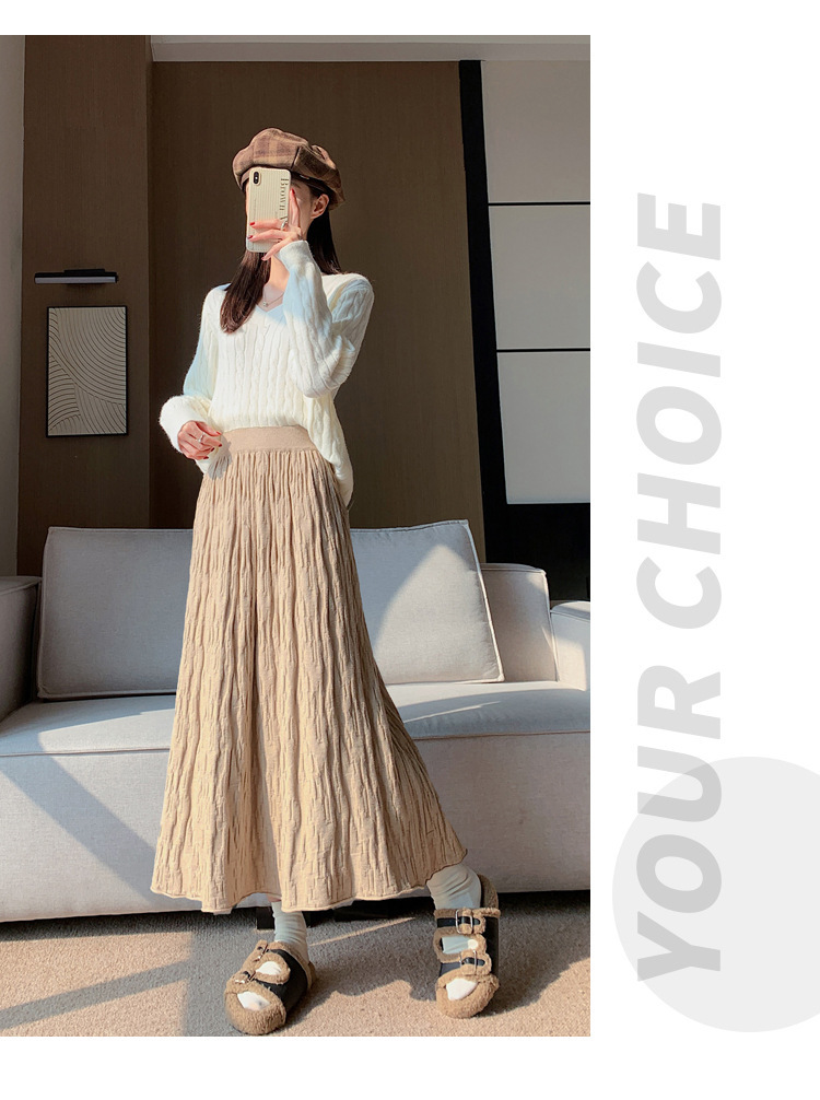 背の高い足首までのロングニットの半身のロングスカートの女性の秋冬a字の木目感の百のスカートの垂れ下がった感じの大きいスカート