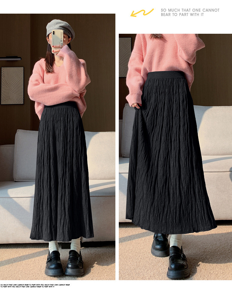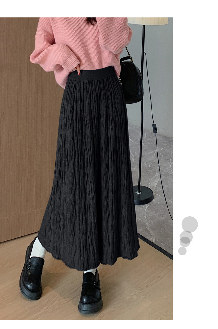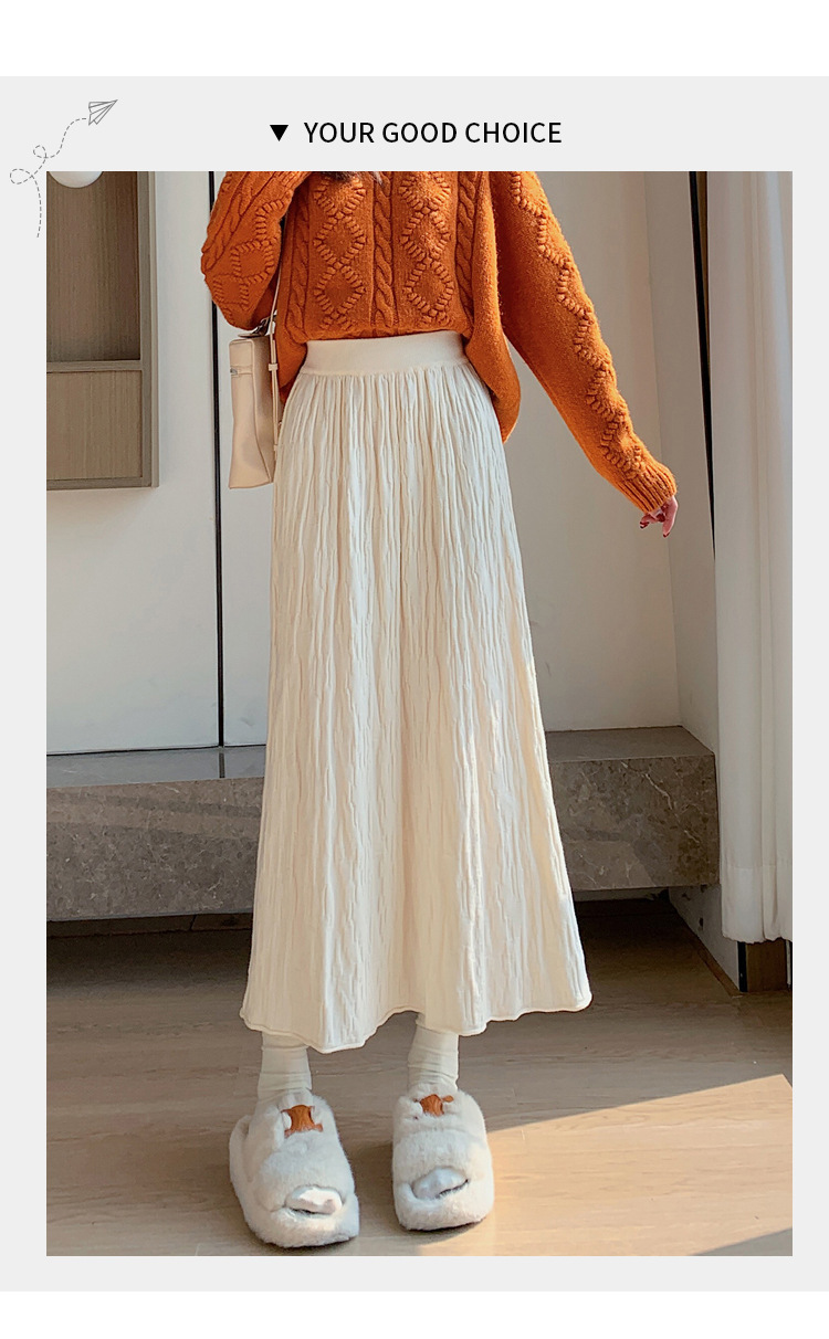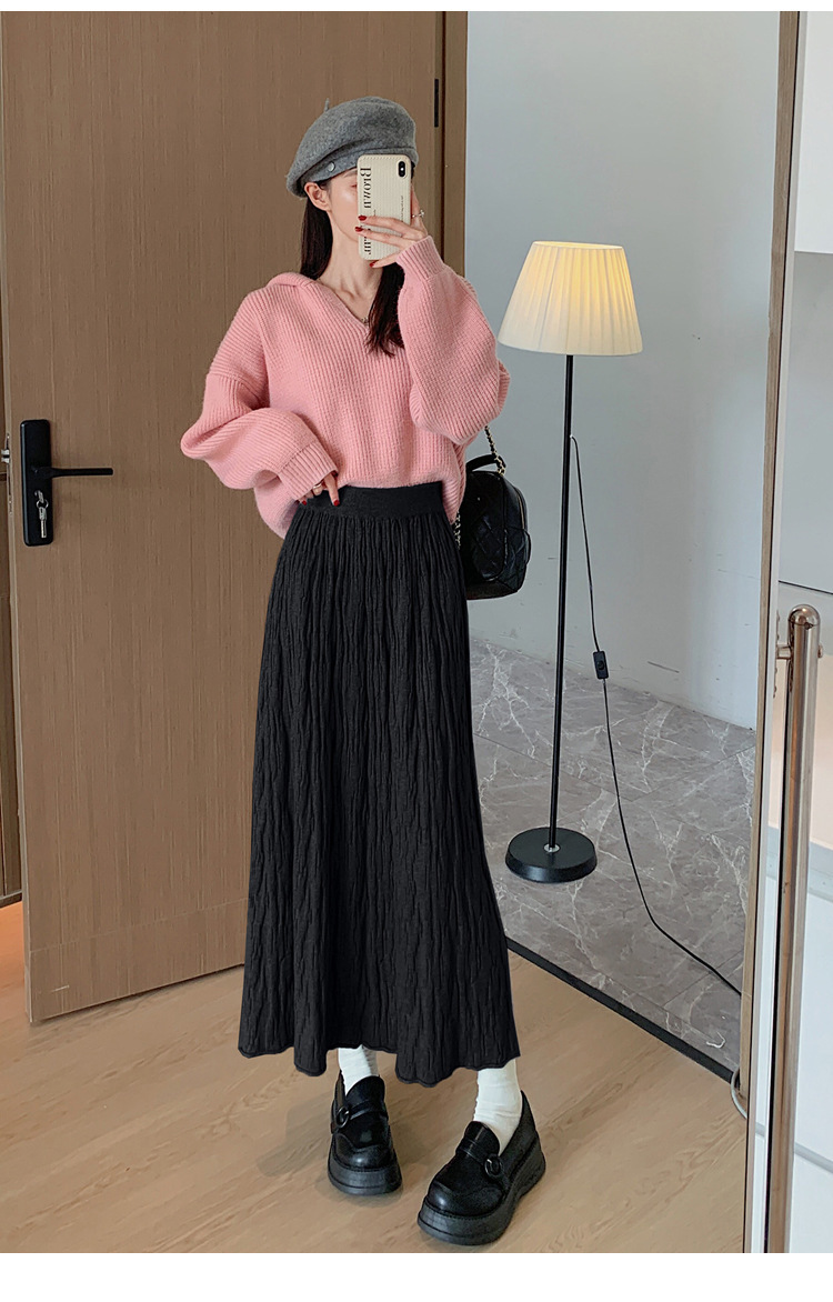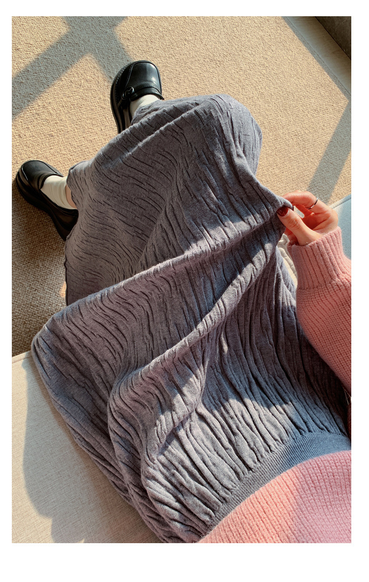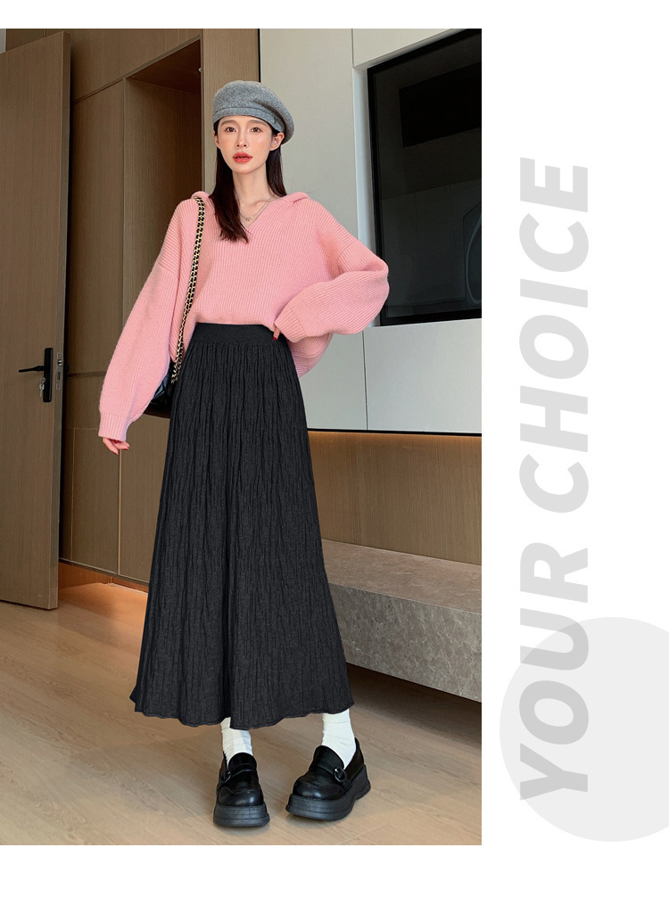 背の高い足首までのロングニットの半身のロングスカートの女性の秋冬a字の木目感の百のスカートの垂れ下がった感じの大きいスカート