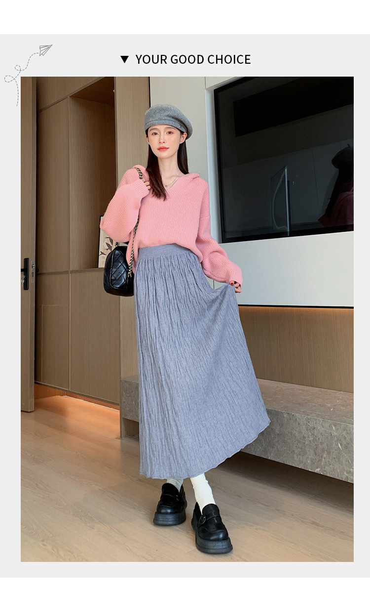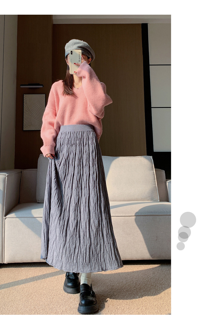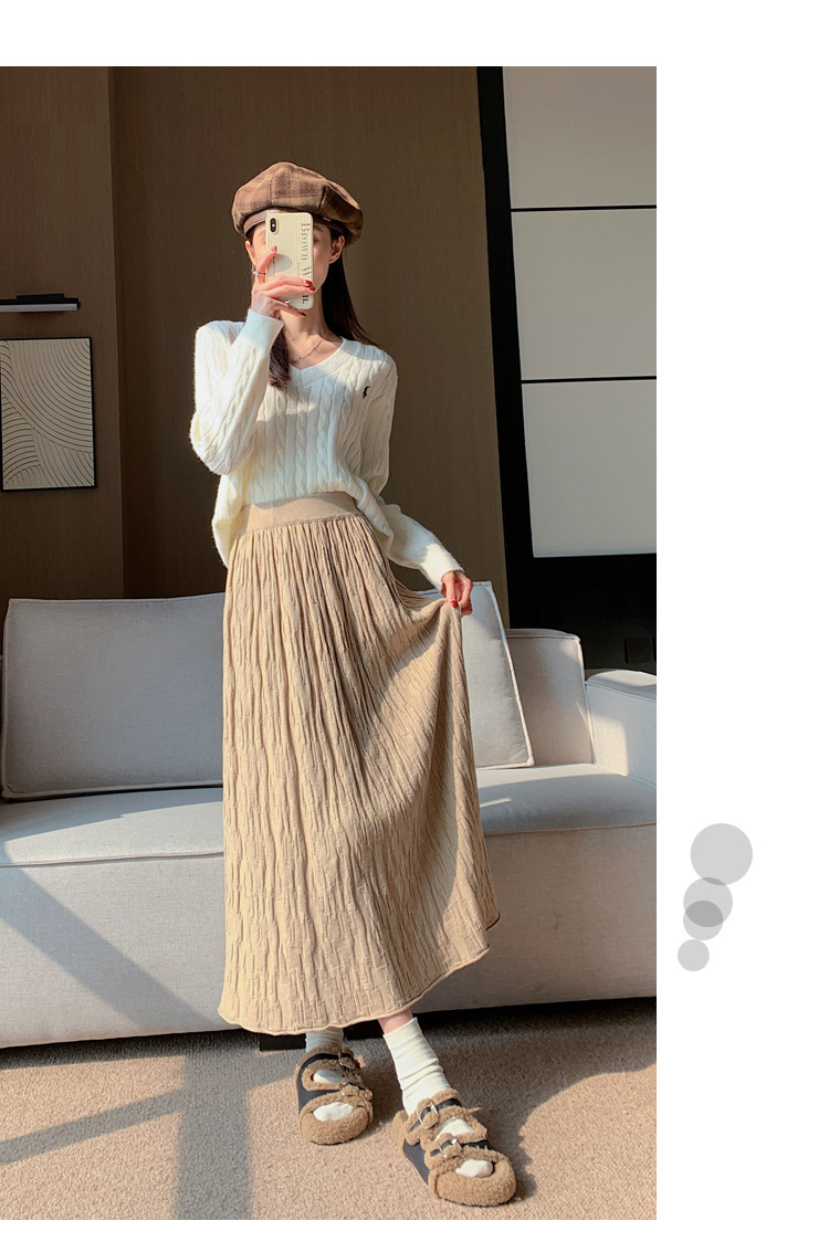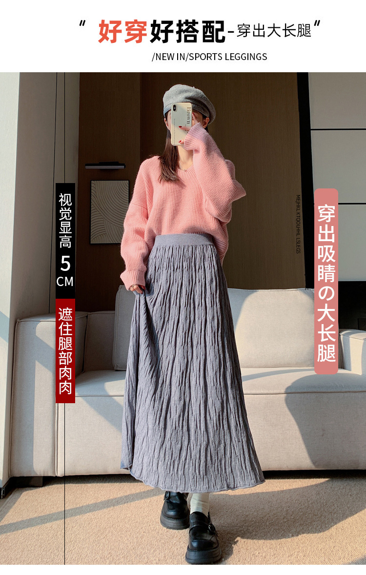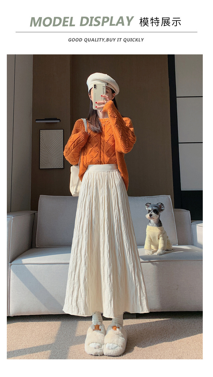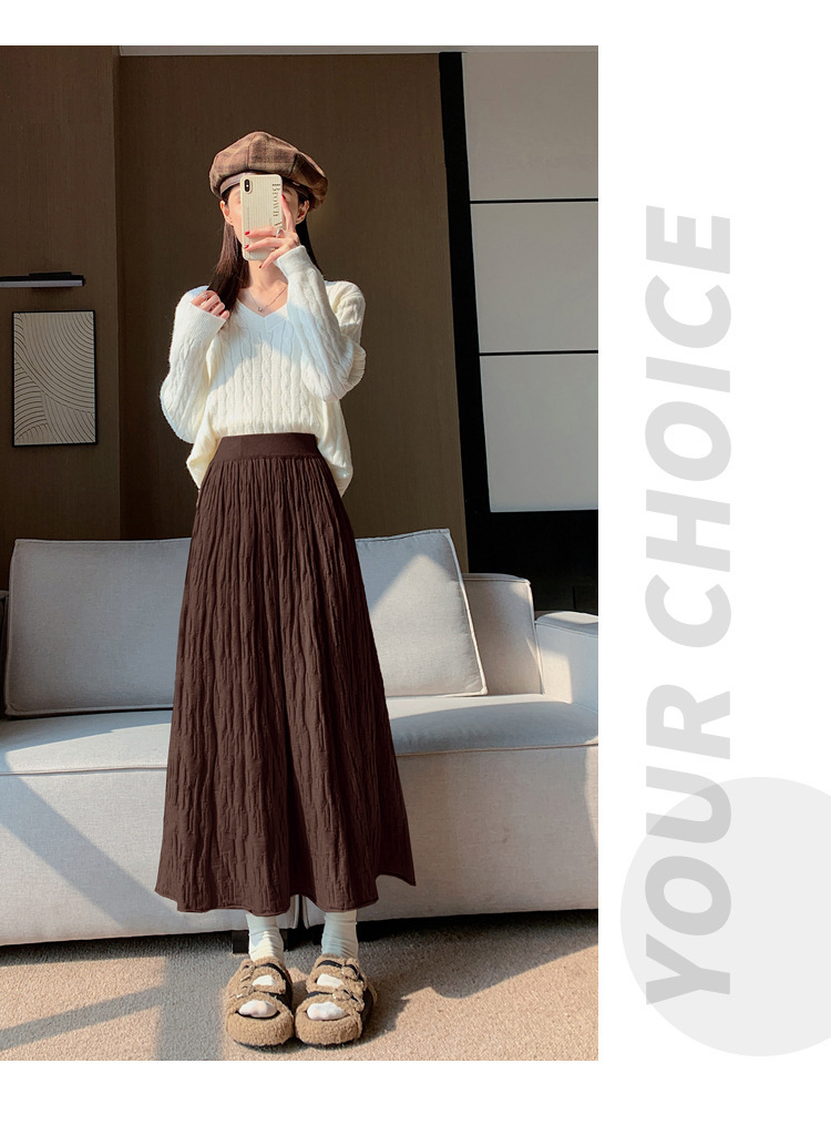 背の高い足首までのロングニットの半身のロングスカートの女性の秋冬a字の木目感の百のスカートの垂れ下がった感じの大きいスカート