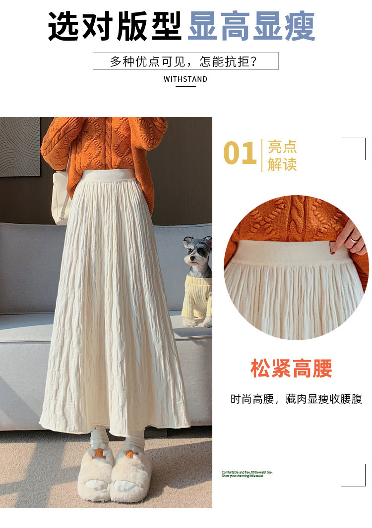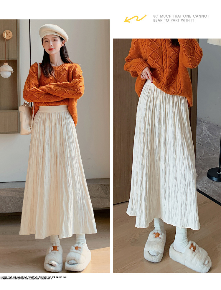 ベロアの白い半身のスカートの女性の秋冬のロングスカートは腰が高くて痩せています。