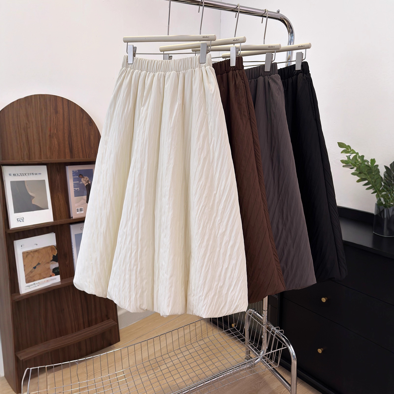 肌理感褶皱夹棉灯笼裙时尚女装松紧腰加厚口袋廓形花苞裙批发9840