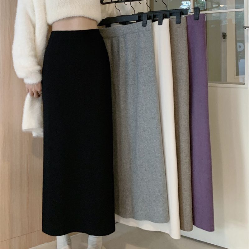 早い春の2023の新型はやせているa字のまっすぐな筒のニットの半身のスカートの婦人服の小さい背の高い腰のペンダント感のスカートを現します。