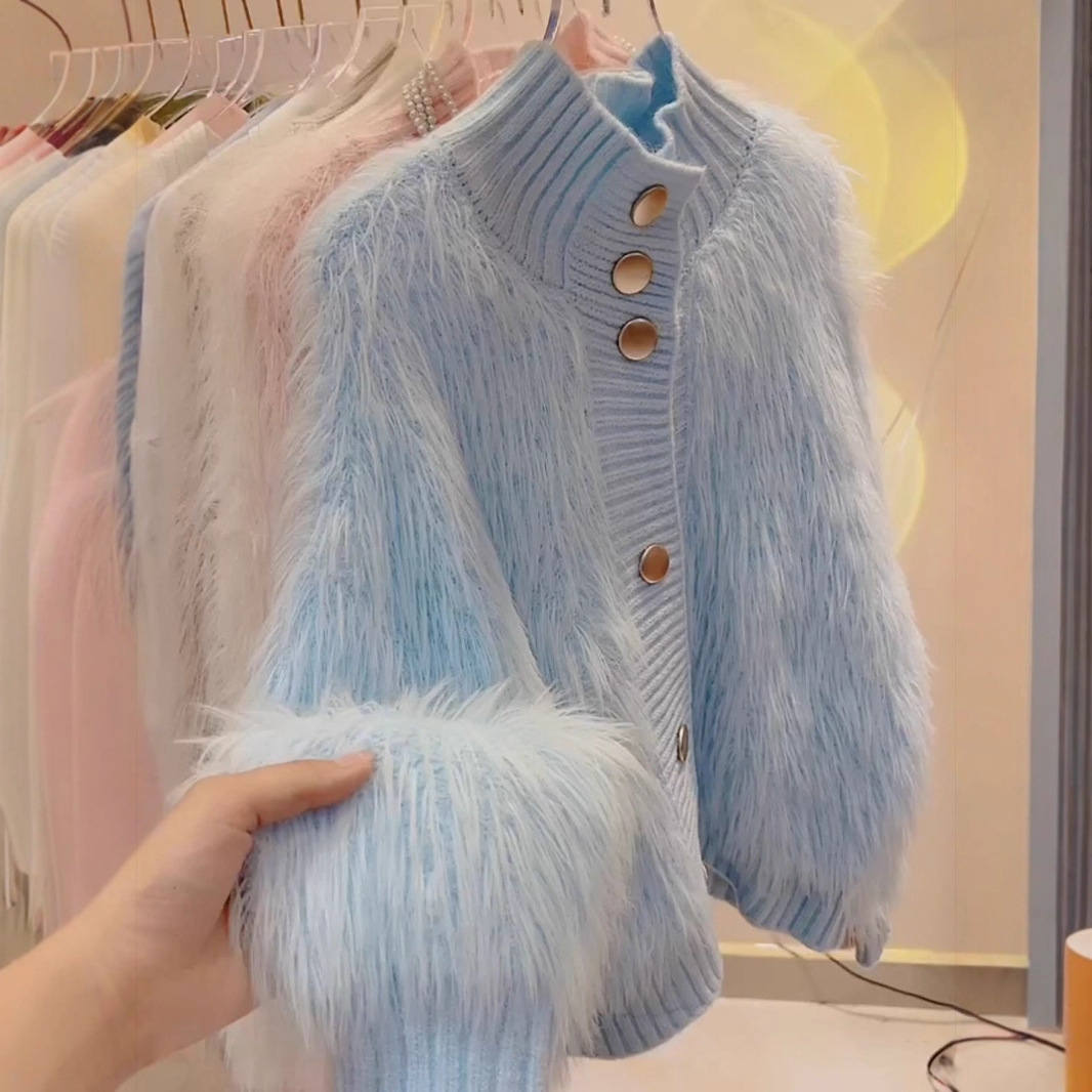 模造ミンクベルベットタートルネックセーターカーディガン女性の秋冬 2024 新しいスタイル気質ルーズ春ウールニットジャケット
