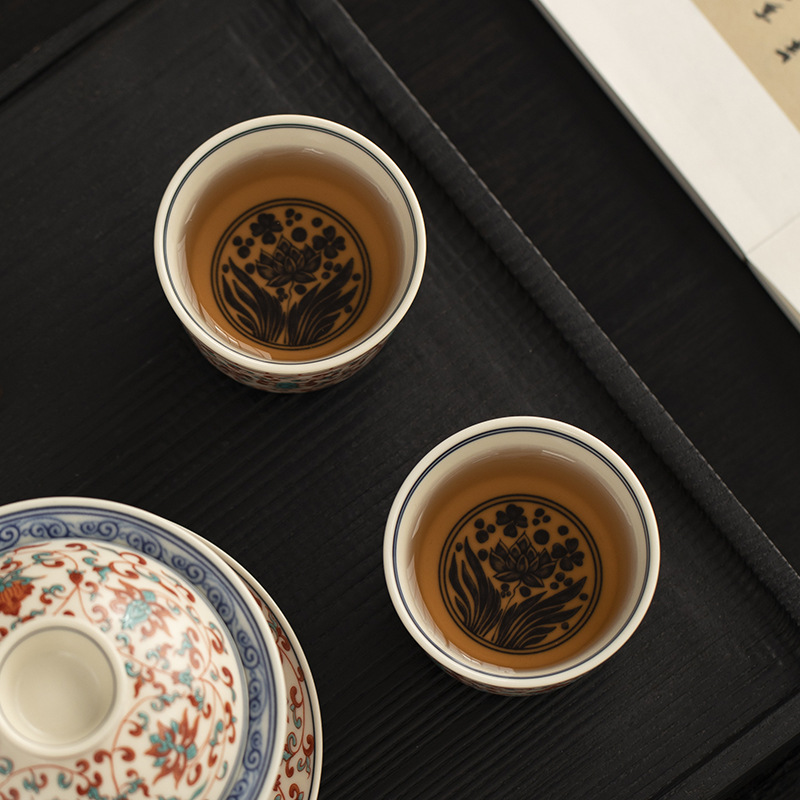 景徳鎮の枝蓮三才は碗のお茶のコップをかぶせます。