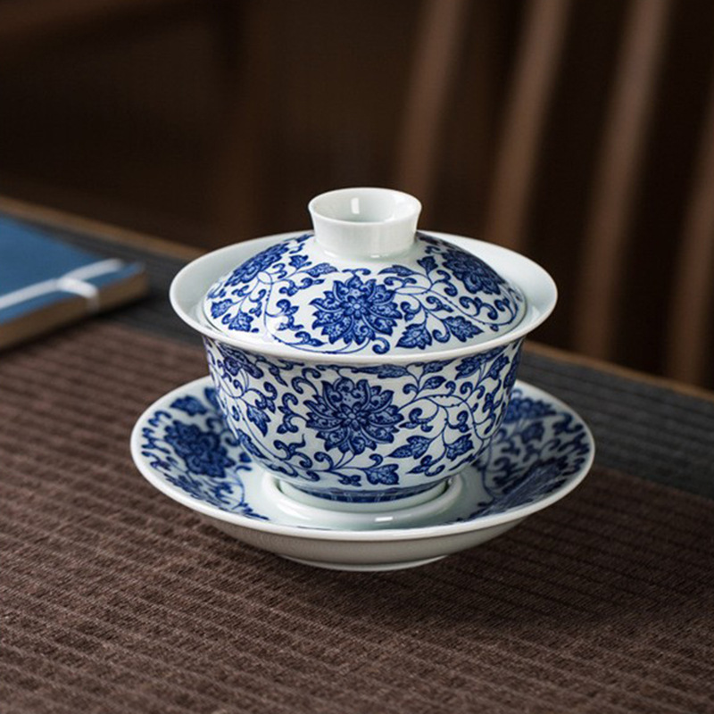青花汝窯三才蓋碗茶杯単一高級工夫茶器茶碗蓋付き