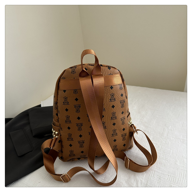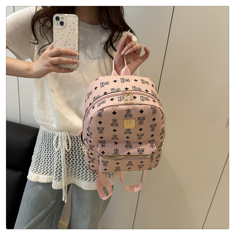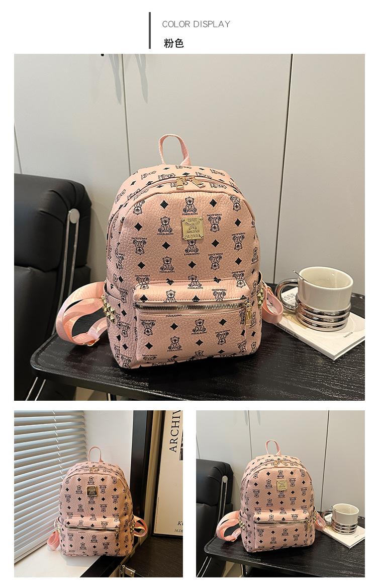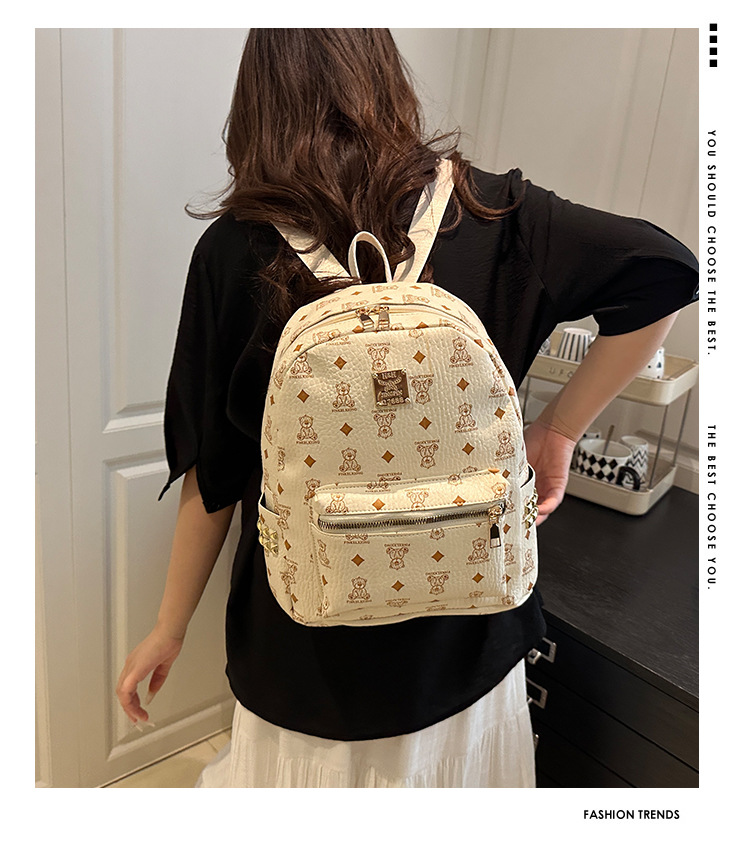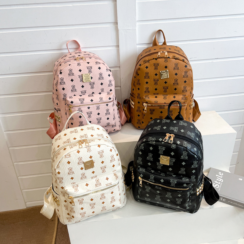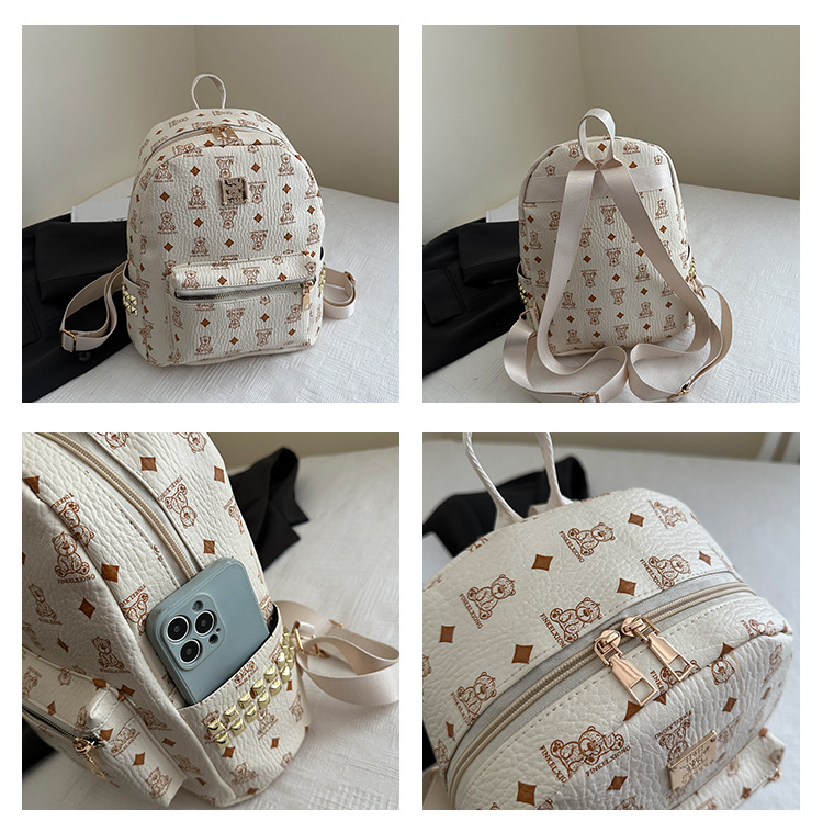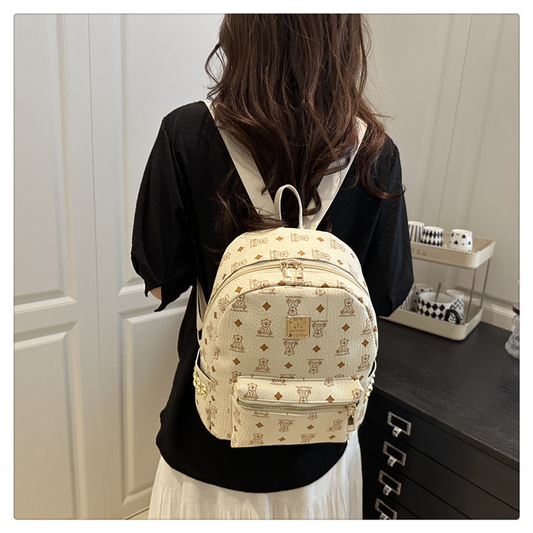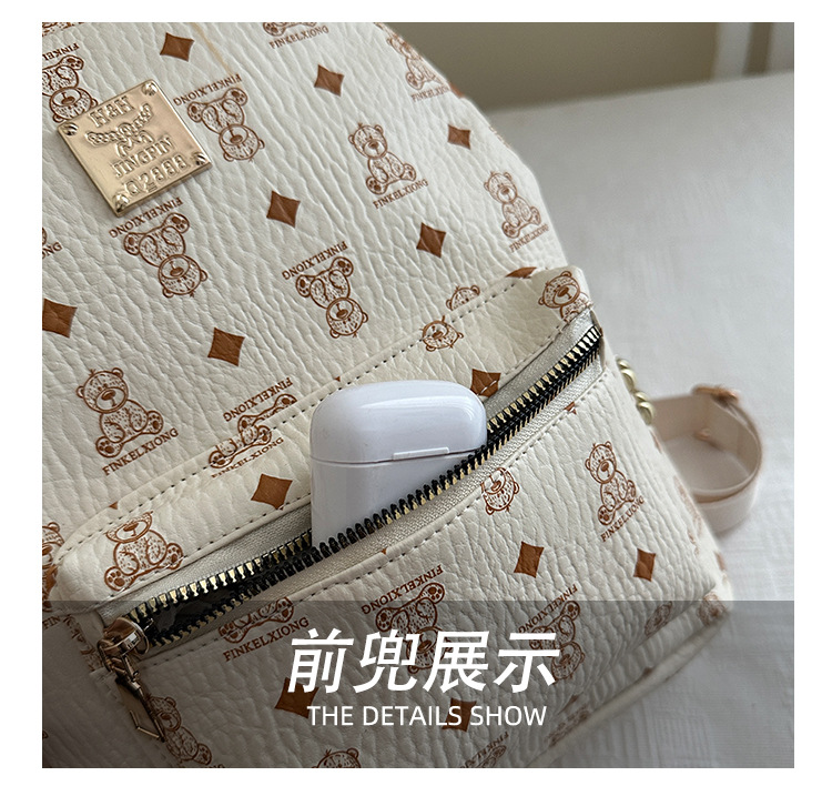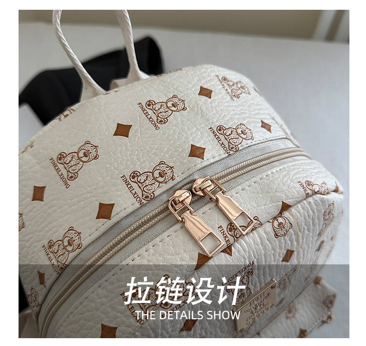2025新款跨境女包出行时尚复古小熊印花双肩背包大容量百搭学生包