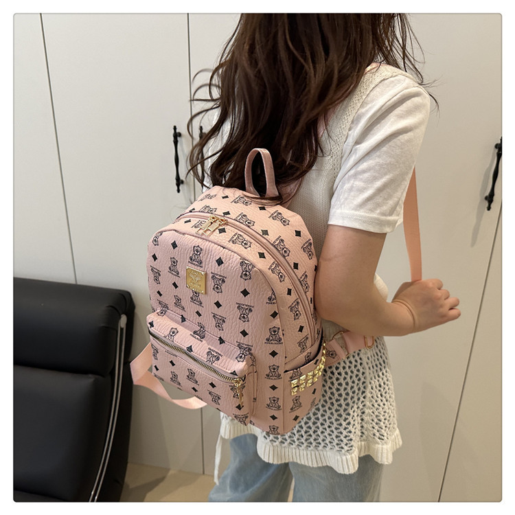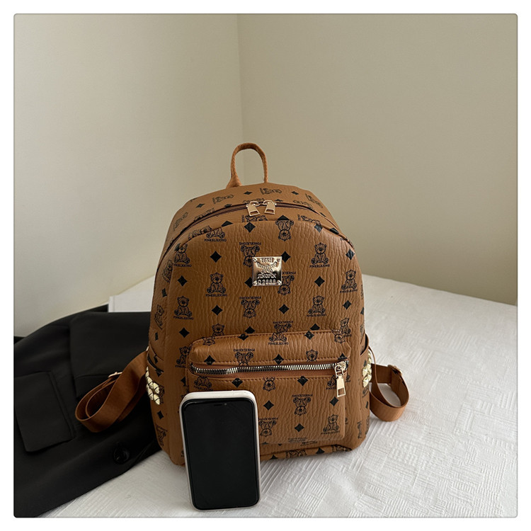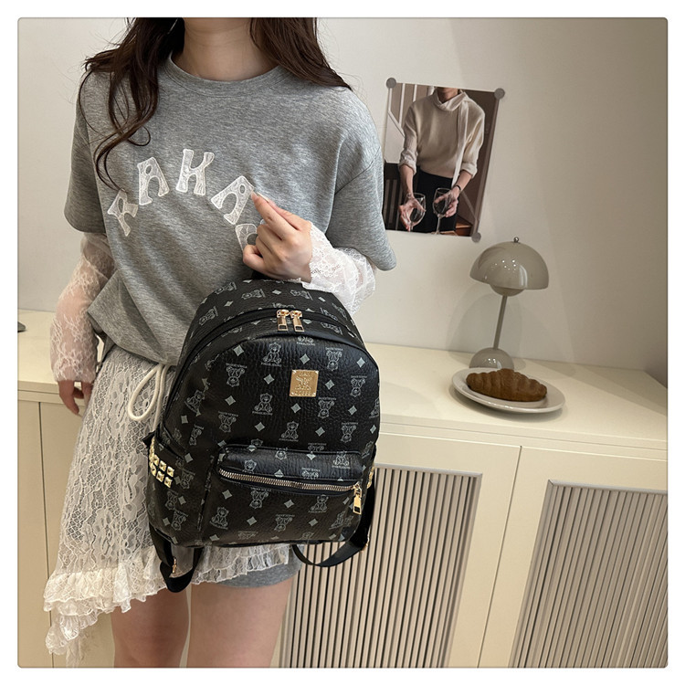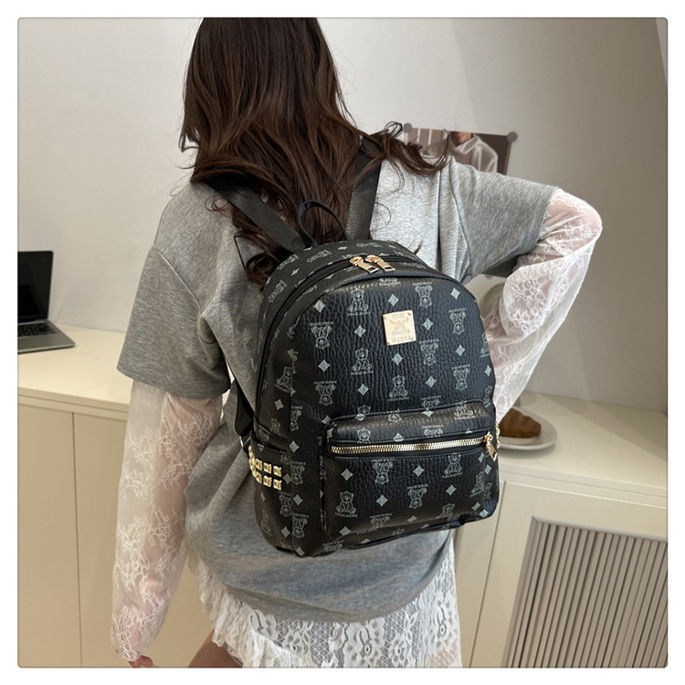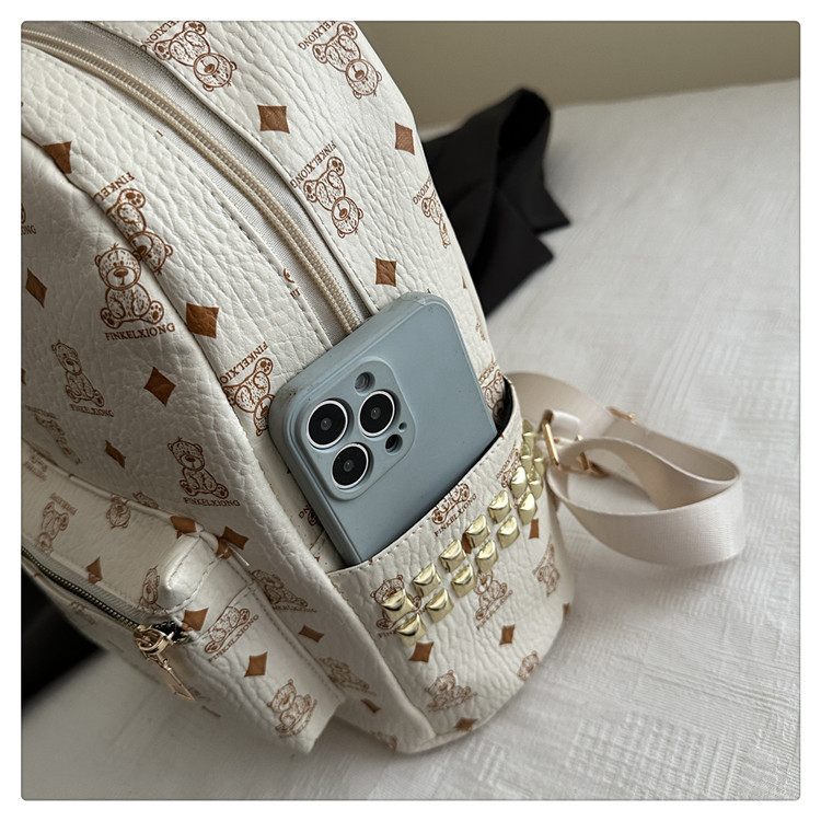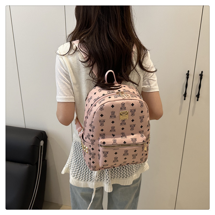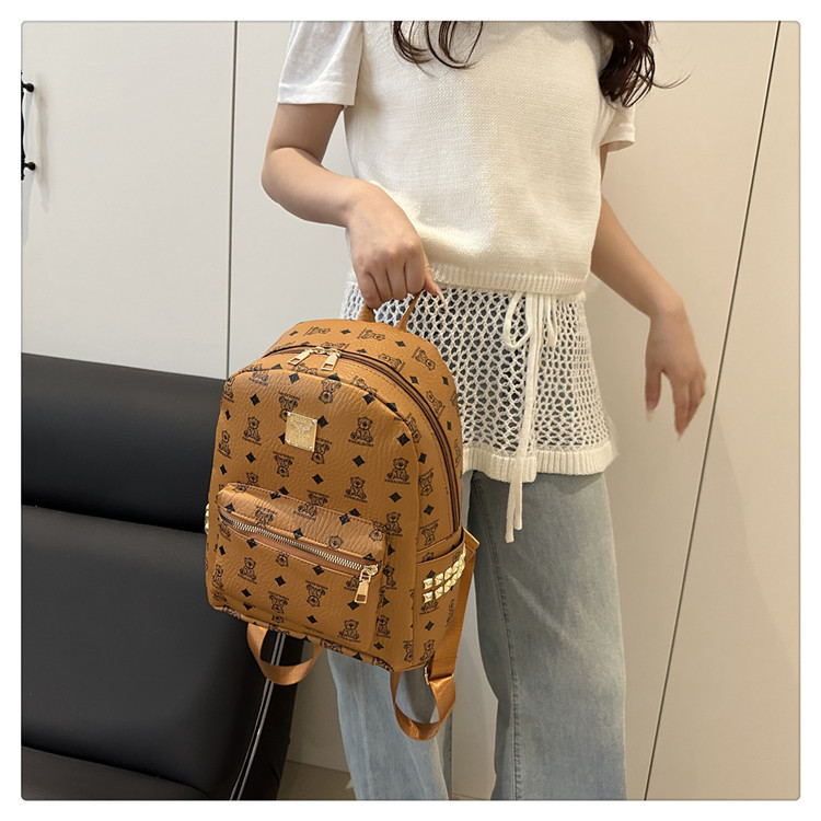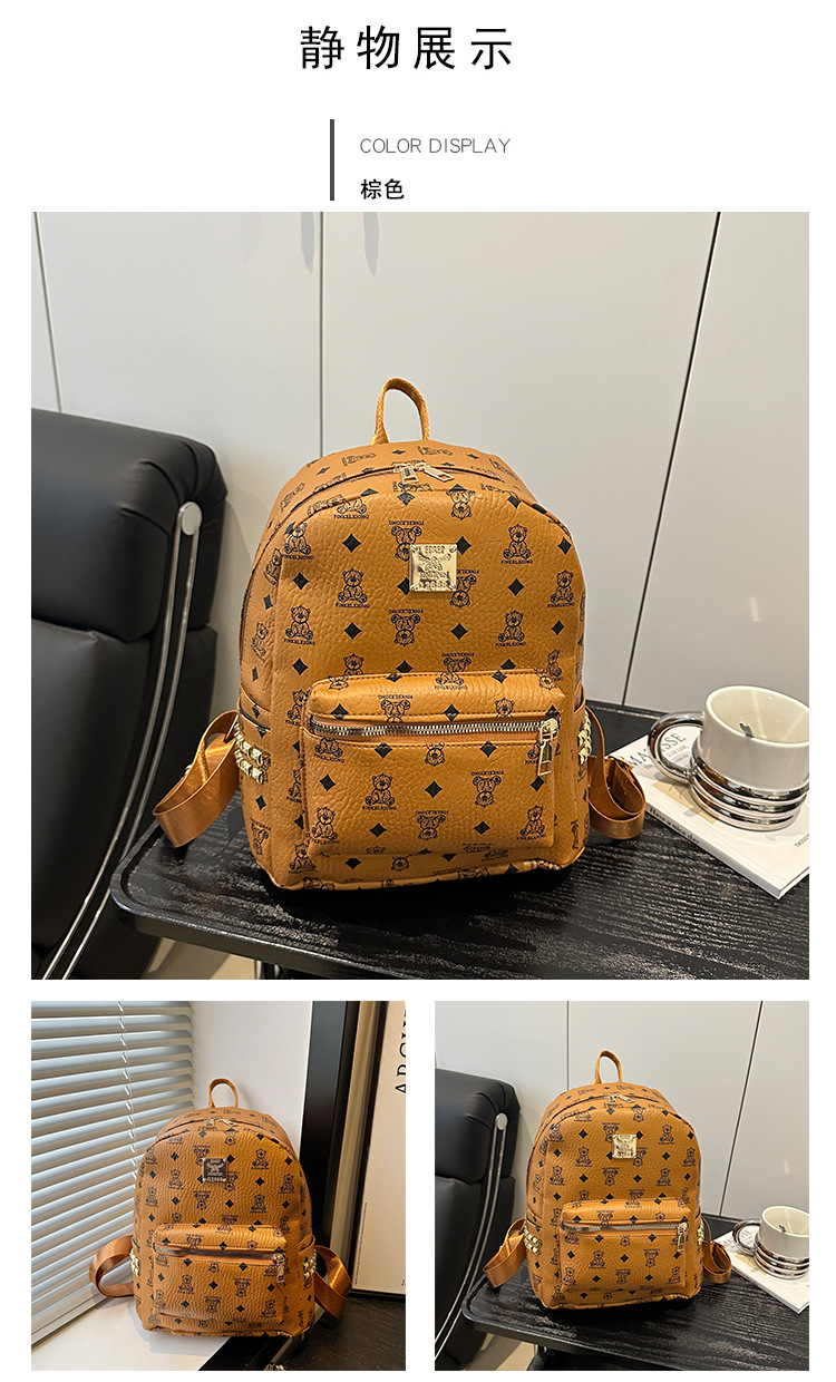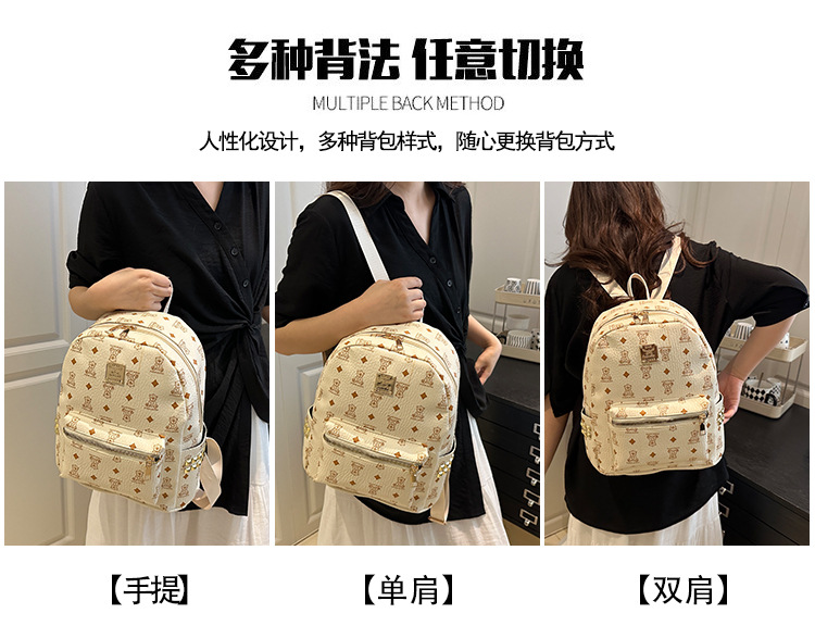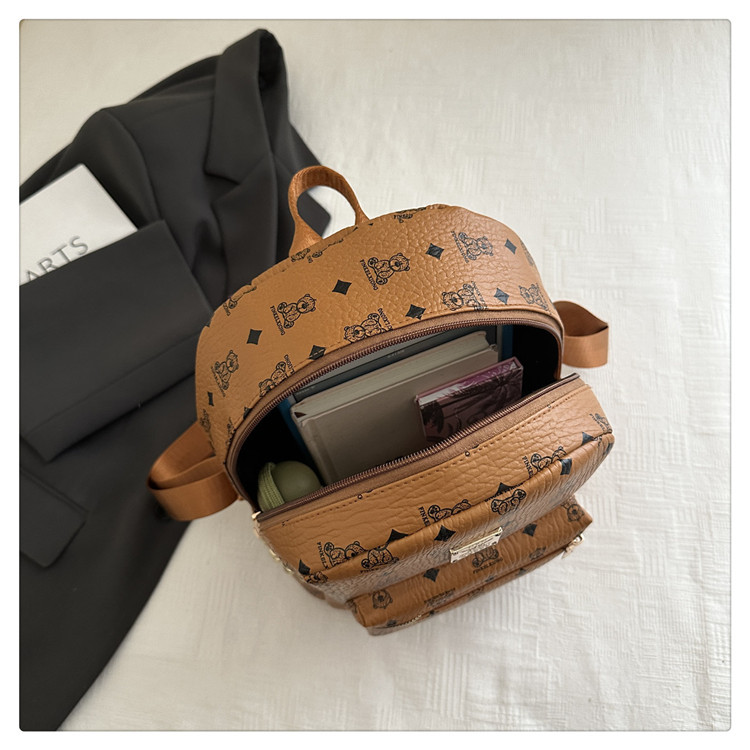 2025新款跨境女包出行时尚复古小熊印花双肩背包大容量百搭学生包