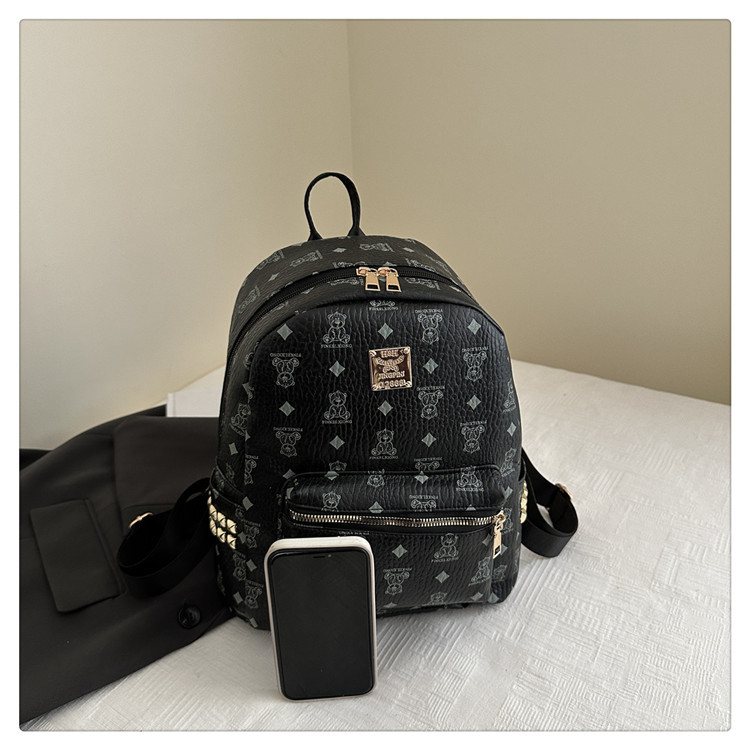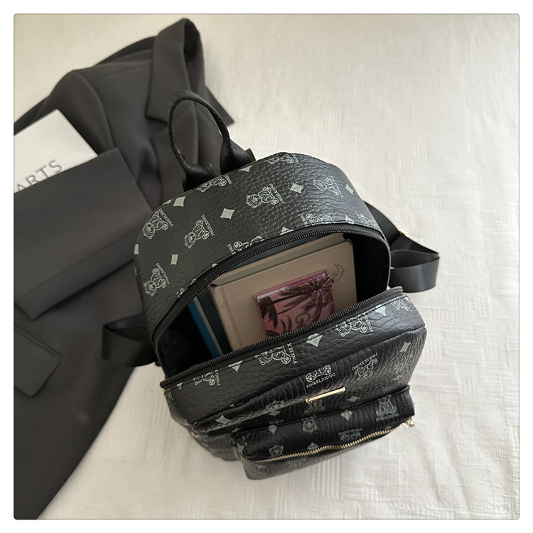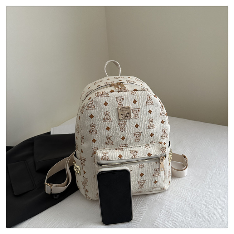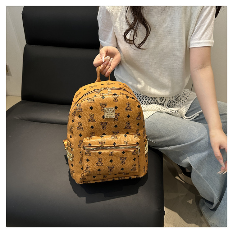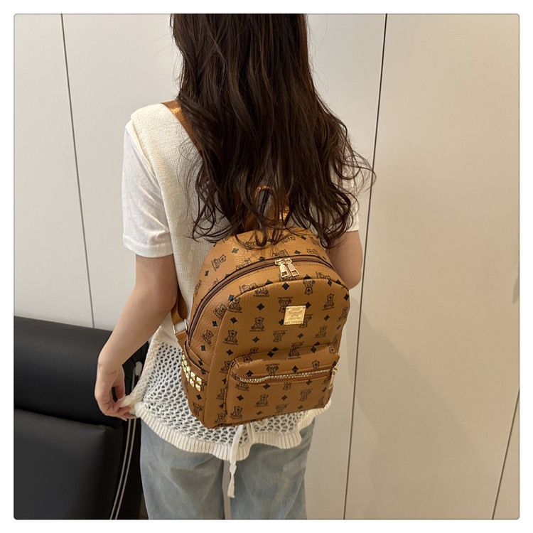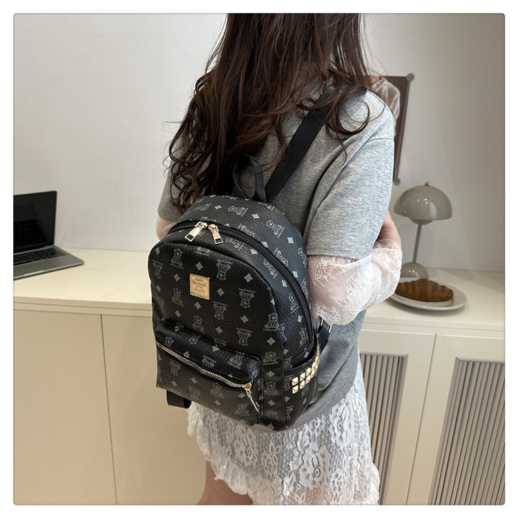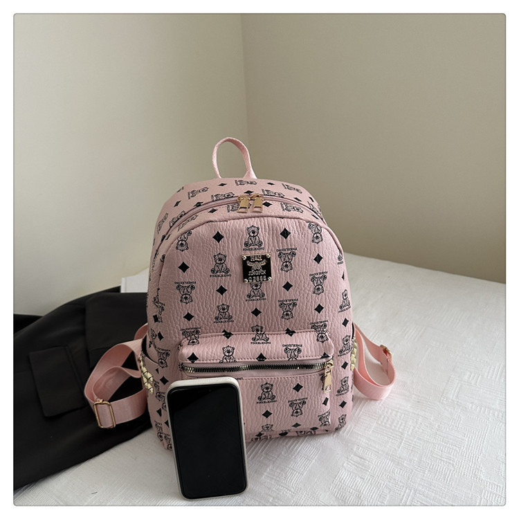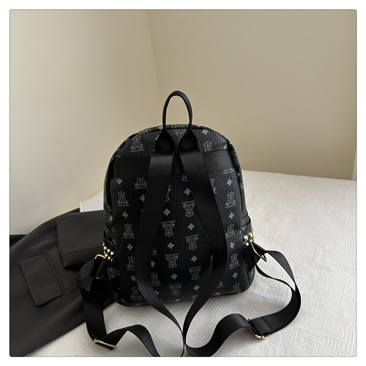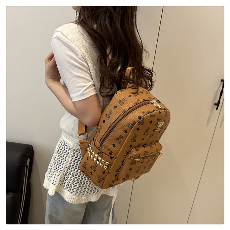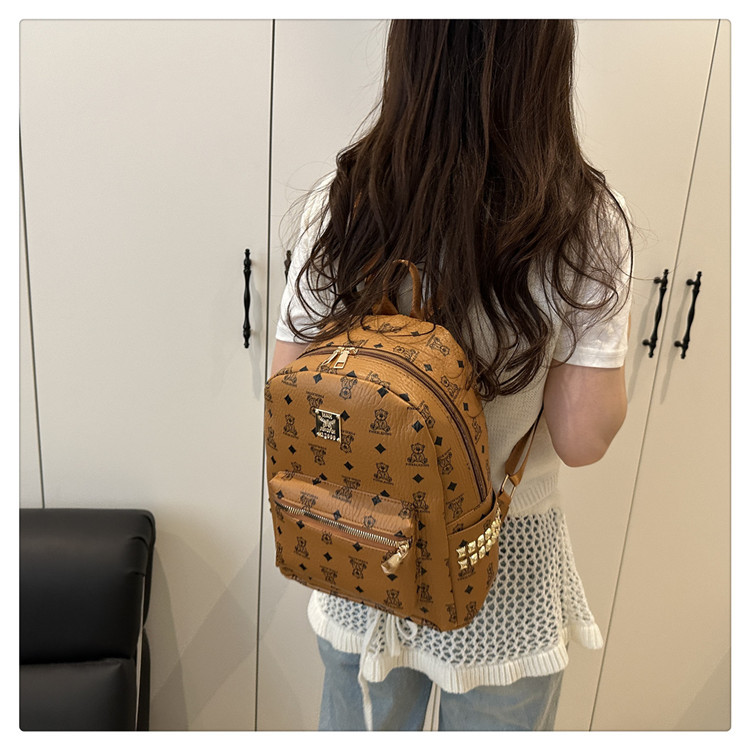 2025新款跨境女包出行时尚复古小熊印花双肩背包大容量百搭学生包