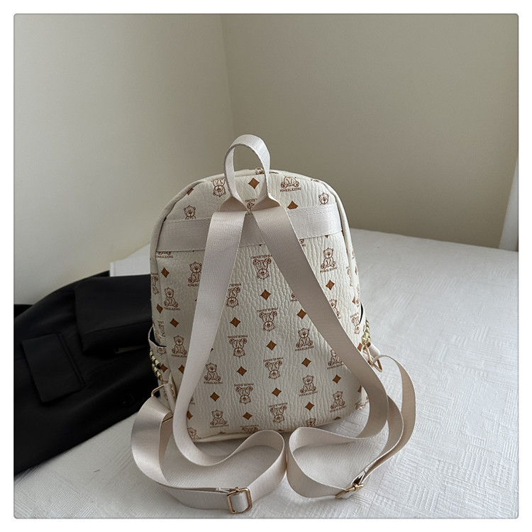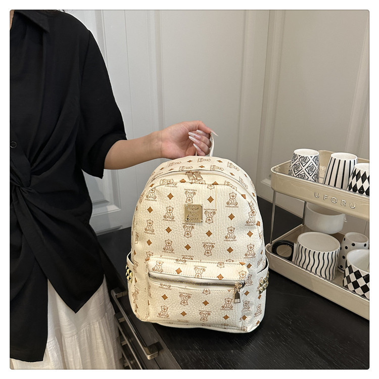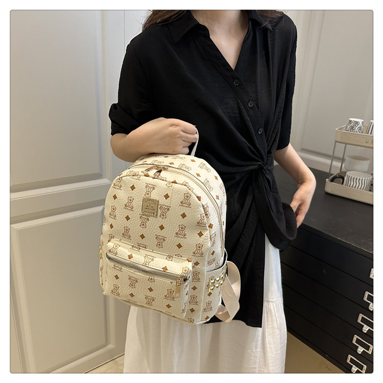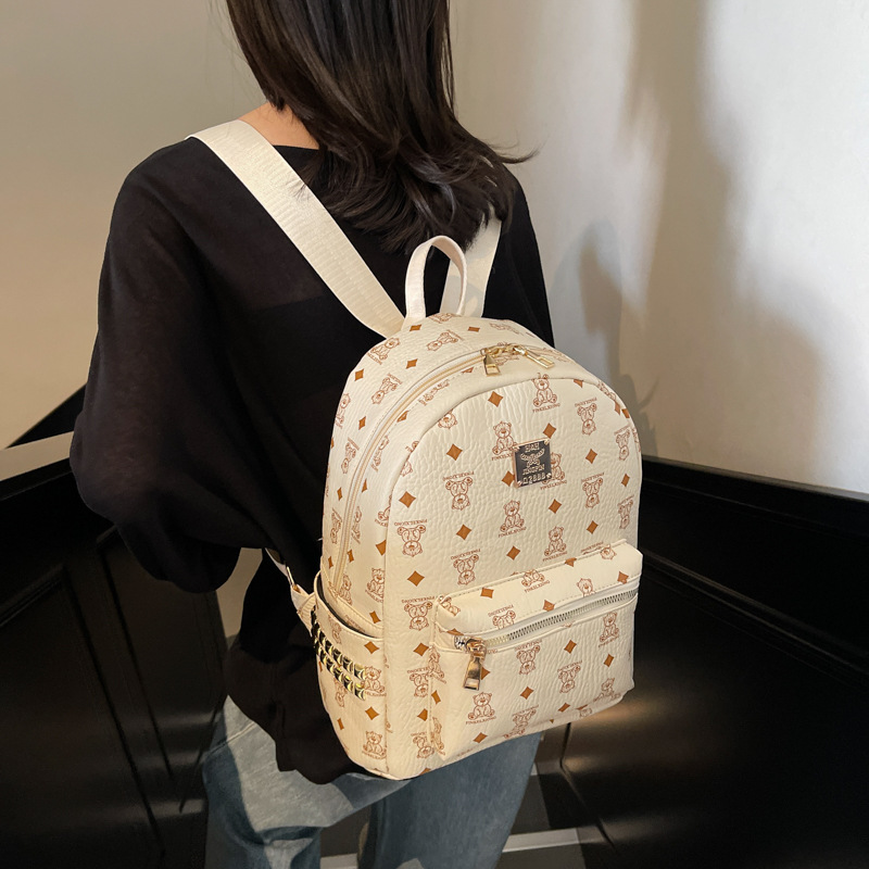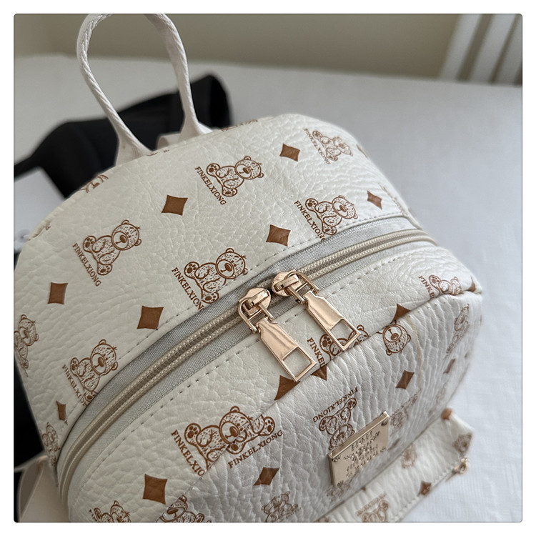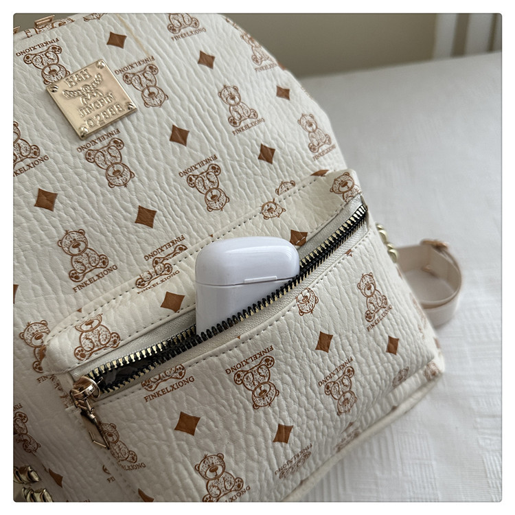 女包新款时尚小众旅游复古女小熊印花双肩背包学生书包双肩包女士