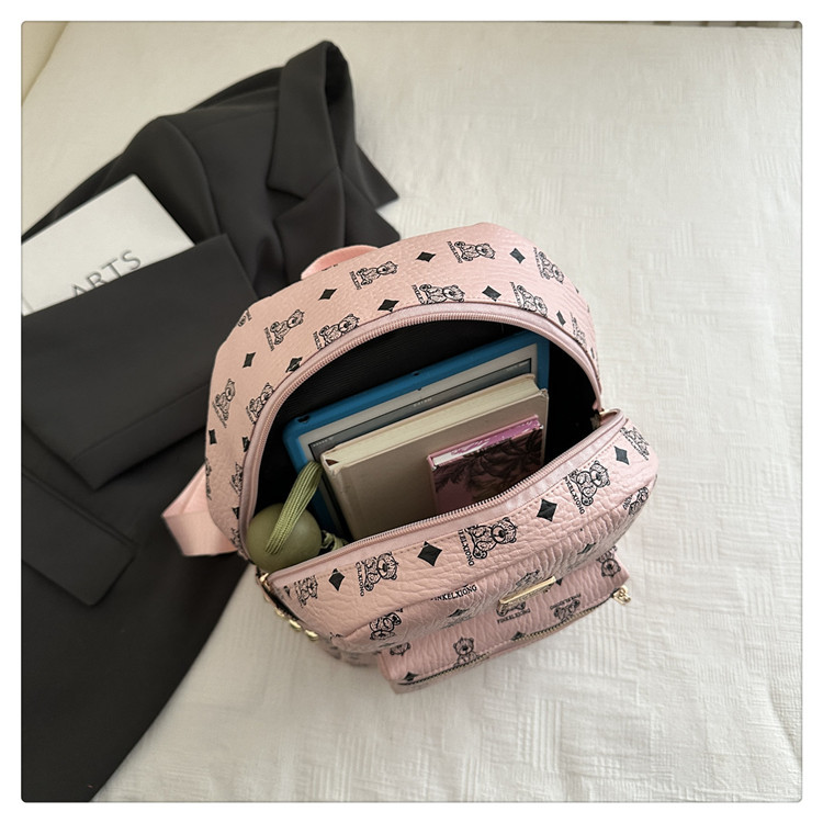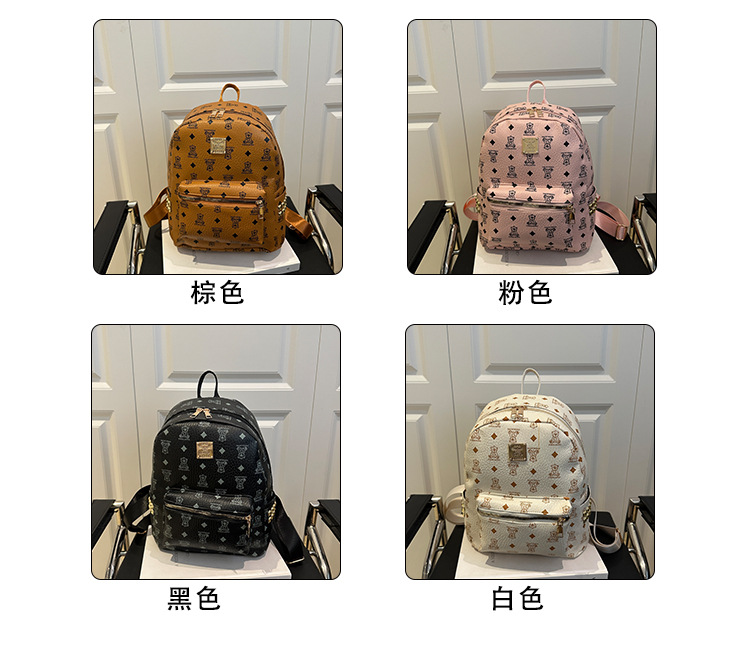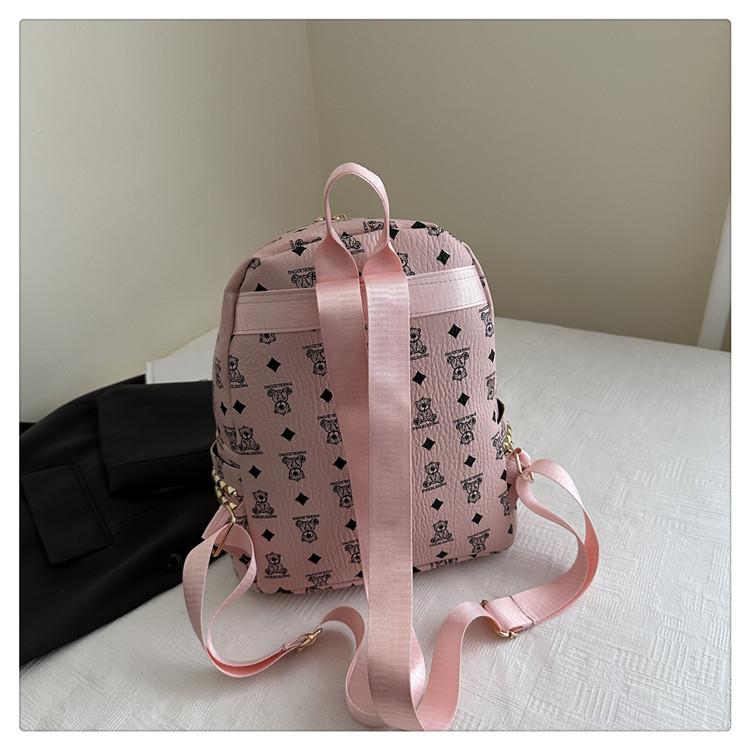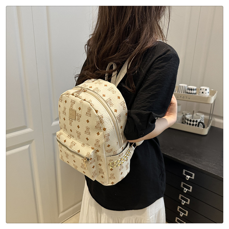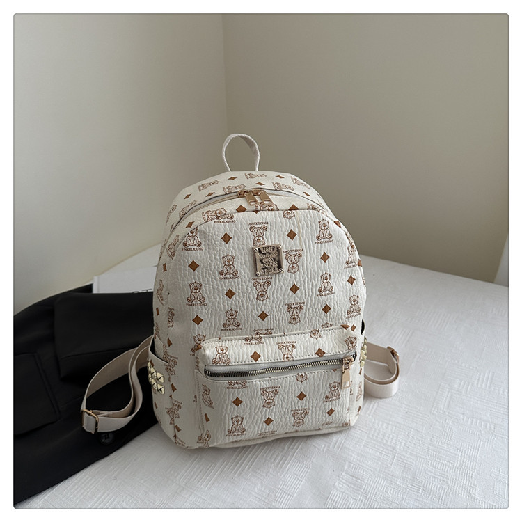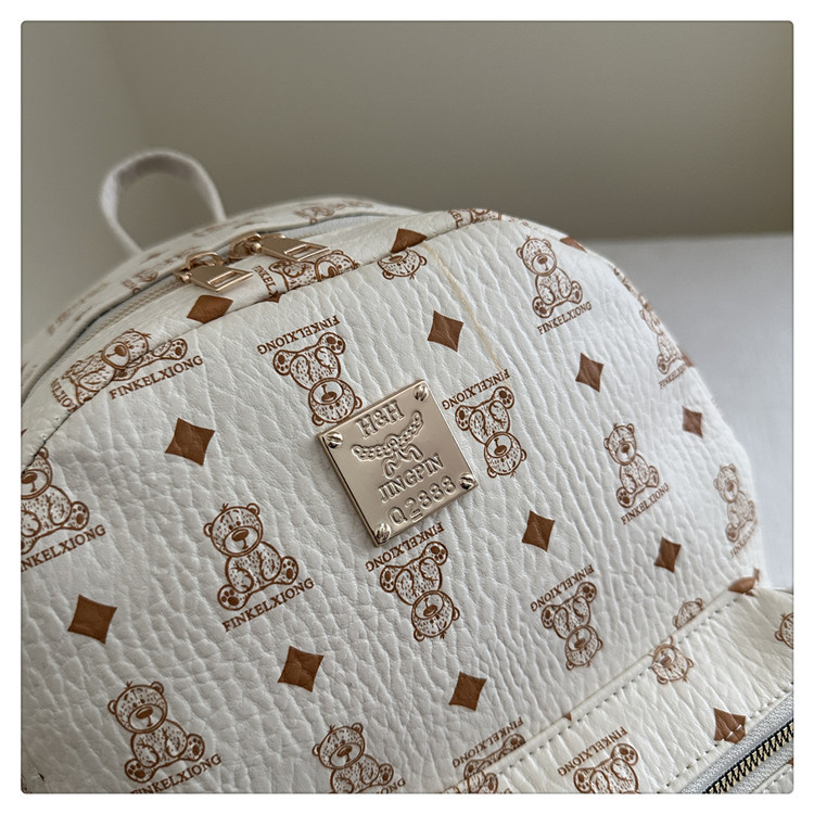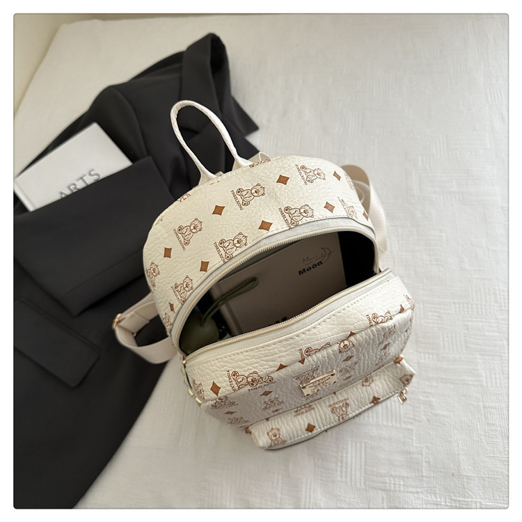 女包新款时尚小众旅游复古女小熊印花双肩背包学生书包双肩包女士