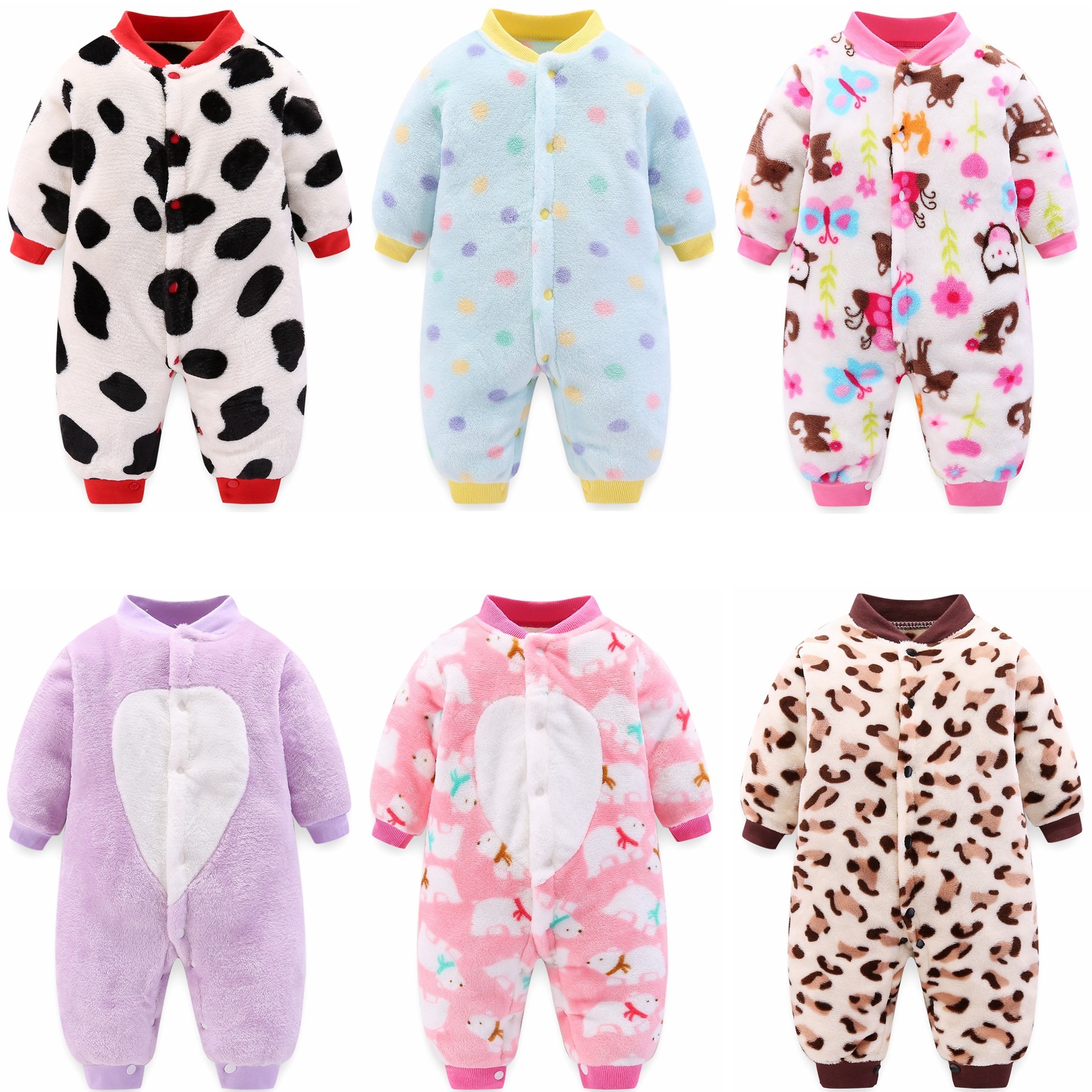 サンゴの毛の秋冬の薄いタイプのワンピースの新生児の保温のファスナーのお尻の服の赤ちゃんの服