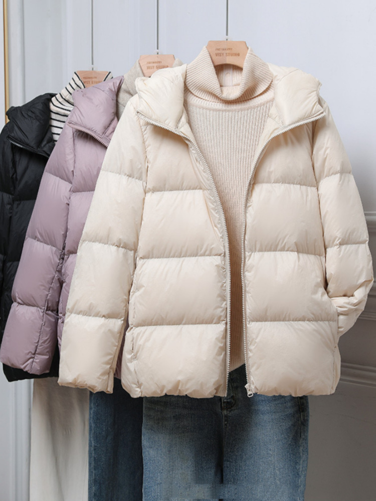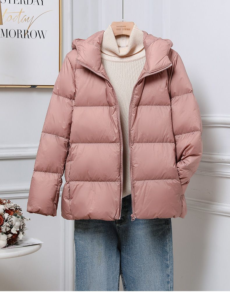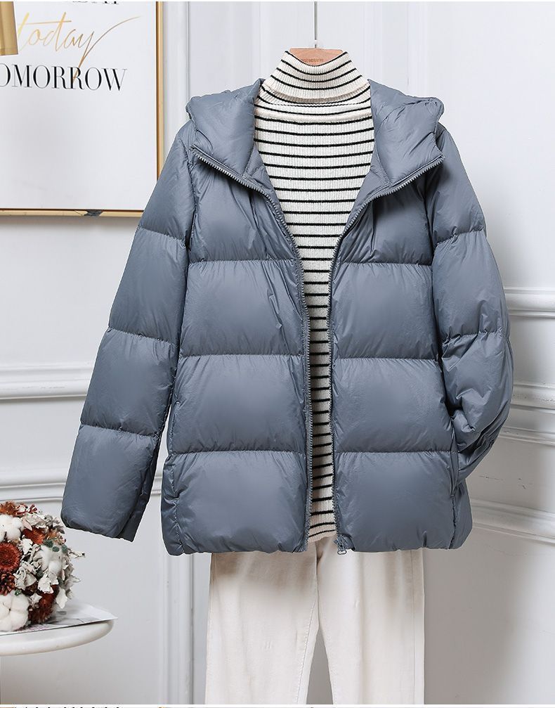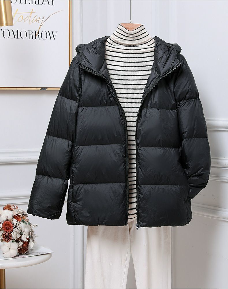 軽量ダウンジャケット女性ショッピングモールフード付きスリムフィット 90% ホワイトダックダウンプラスサイズ軽量コクーンパンジャケット厚手
