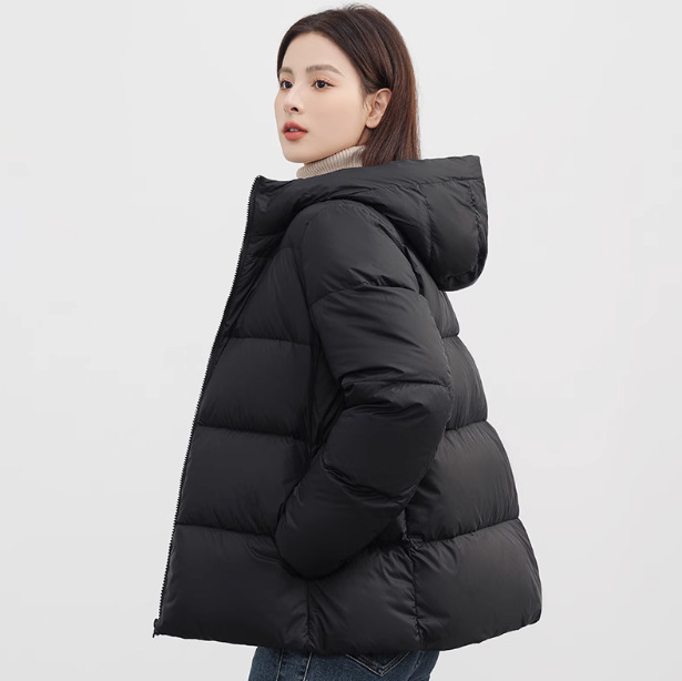 新款轻薄款羽绒服女商场款连帽修身90%白鸭绒码轻型茧型面包服厚