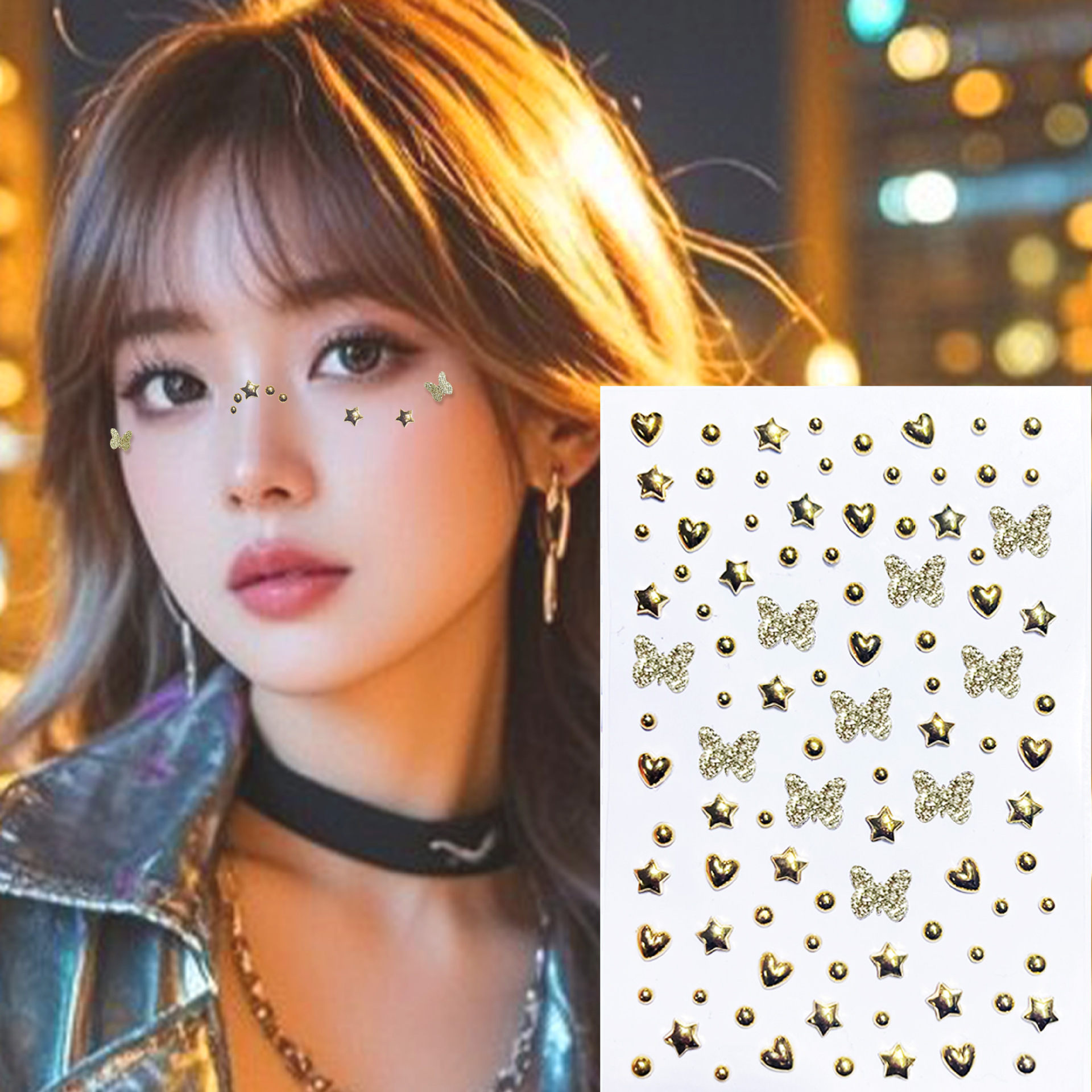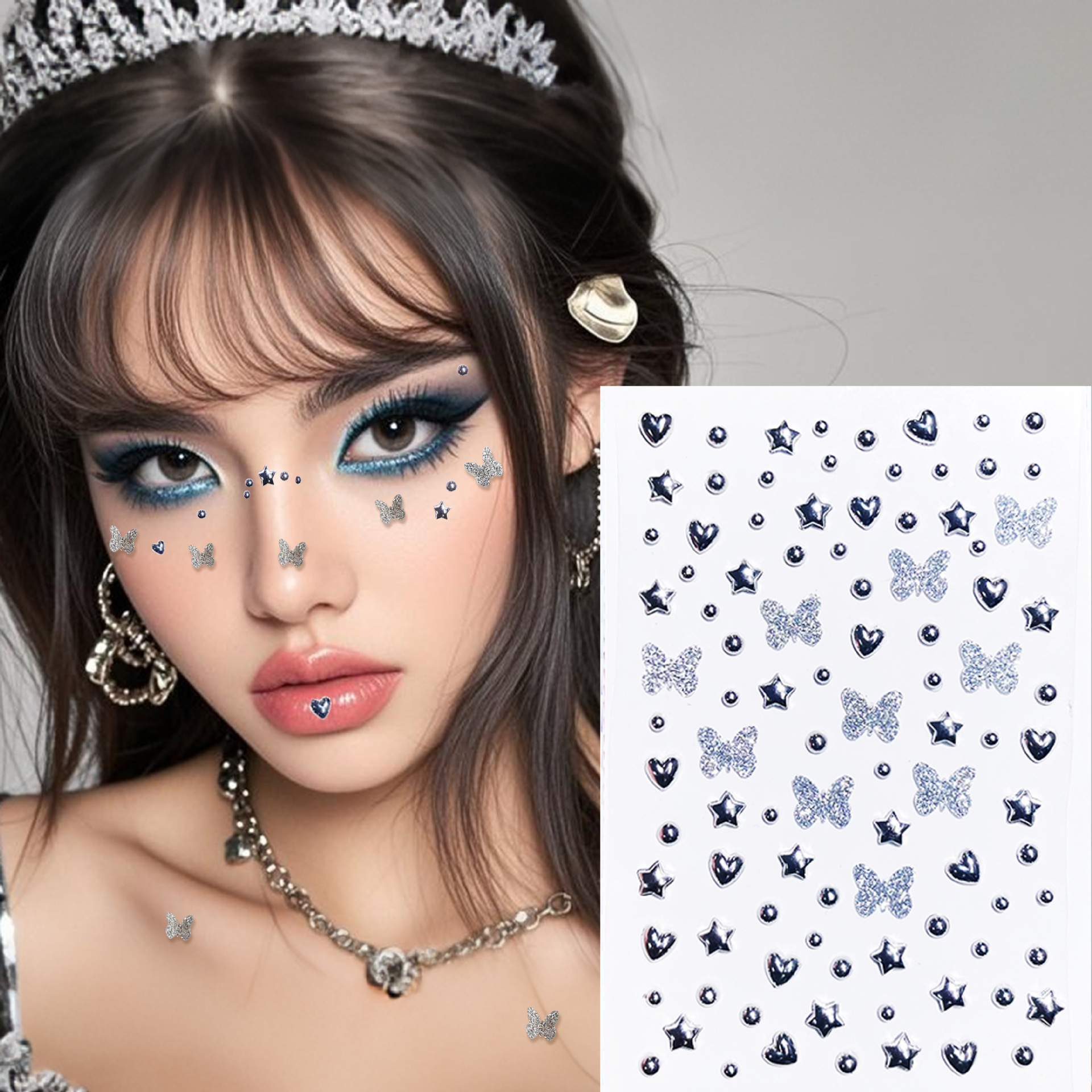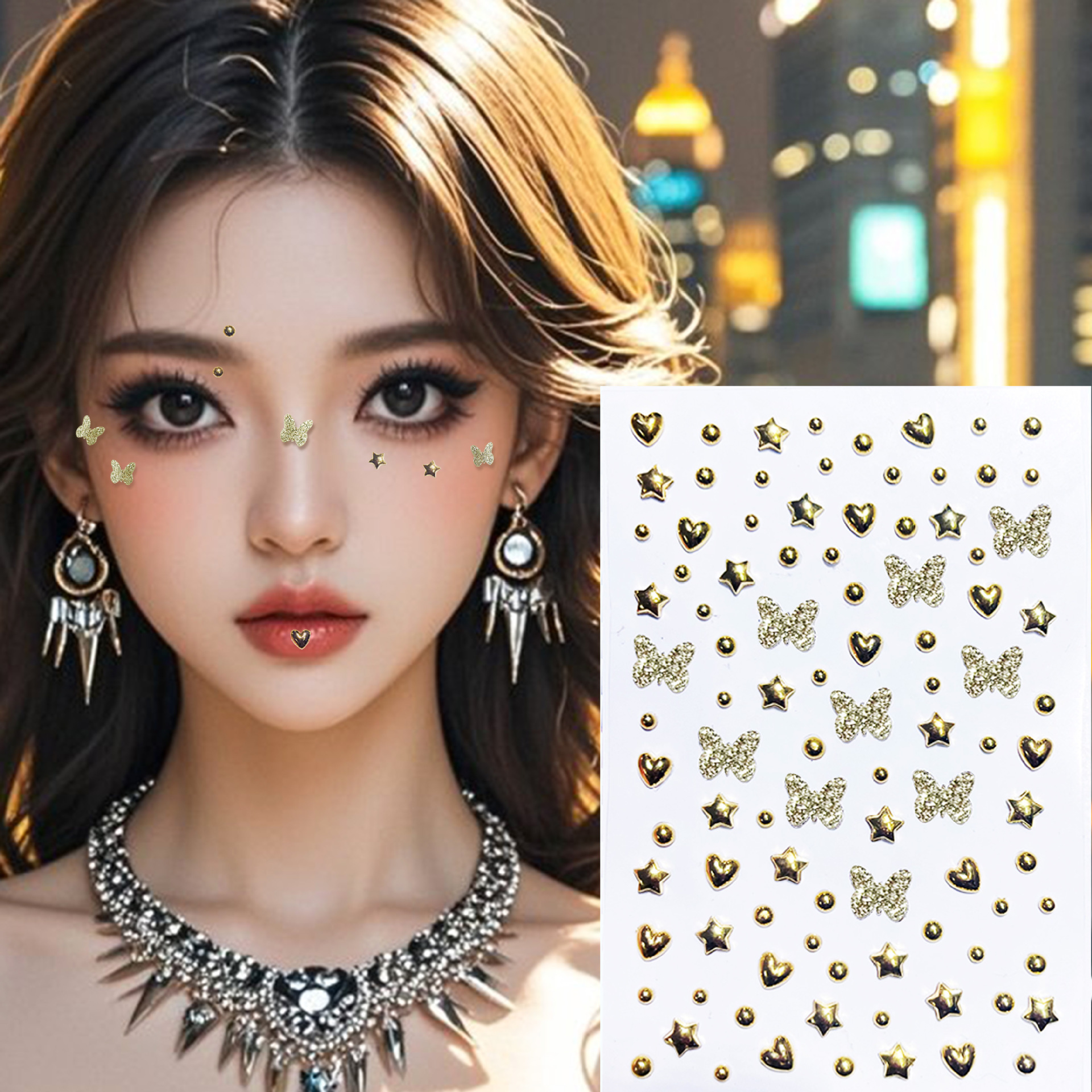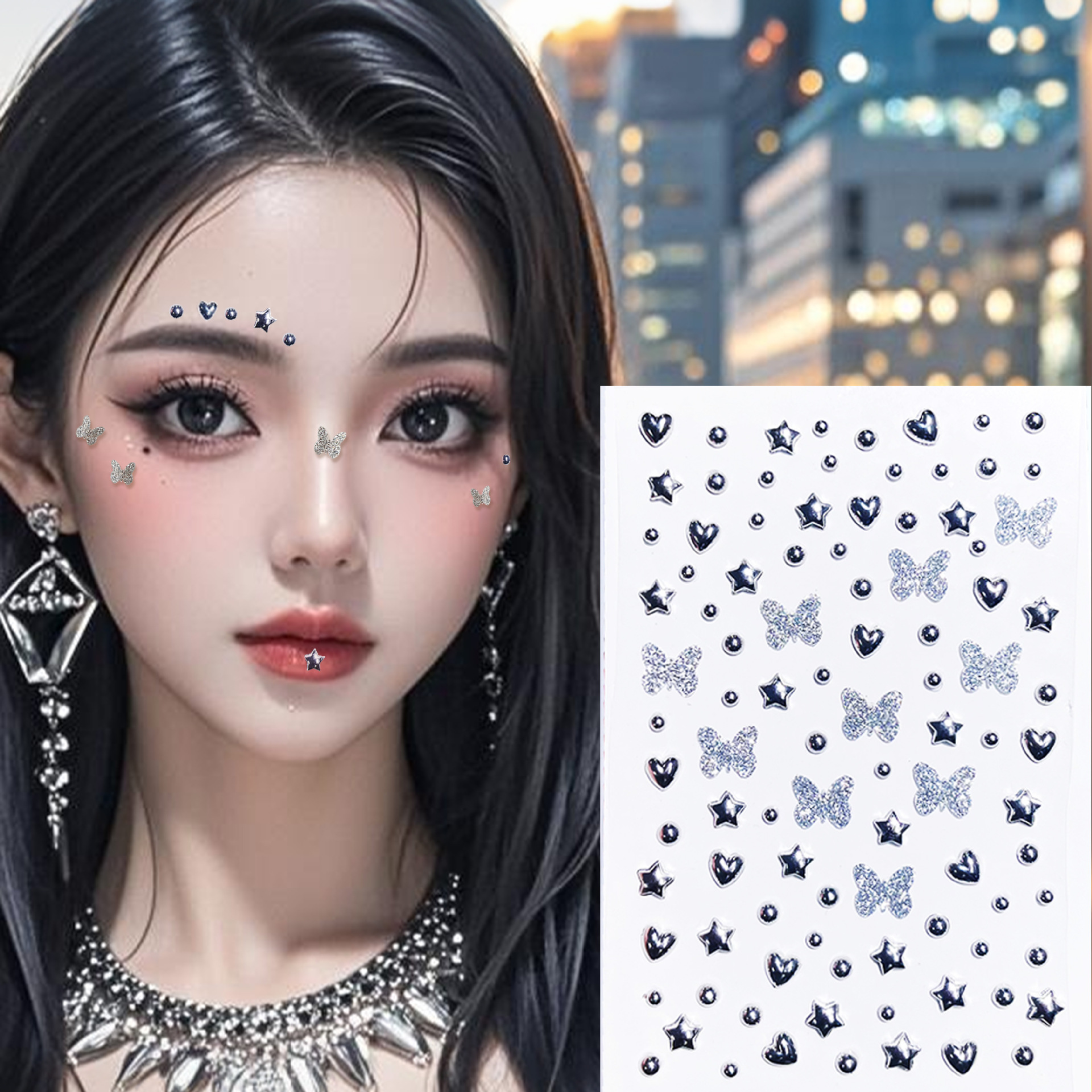 顔のラブダイヤモンドステッカー五芒星リボン中空自己粘着装飾パフォーマンスメイクアップ顔の輝くダイヤモンドアイフェイスステッカー