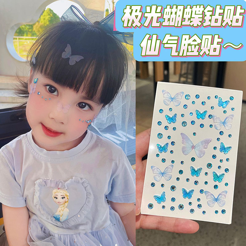 氷透極光蝶薄紗蝶自粘演出子供舞台顔超フラッシュメイク3dダイヤモンド装飾品