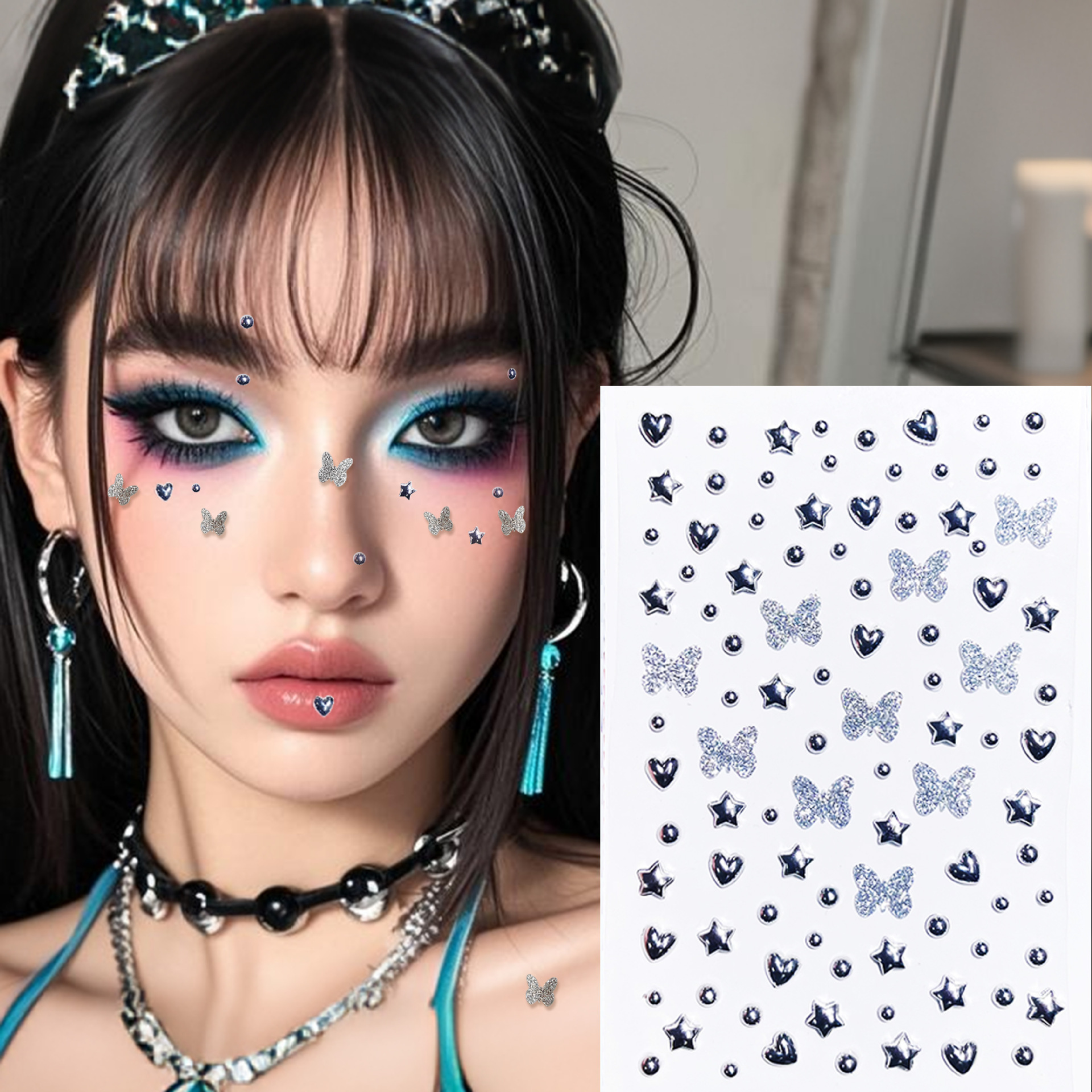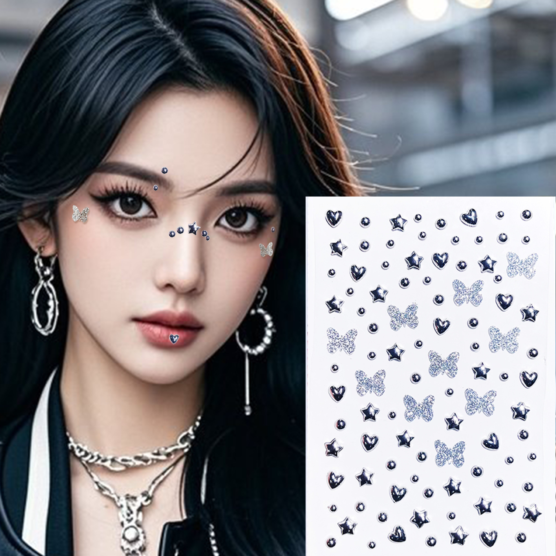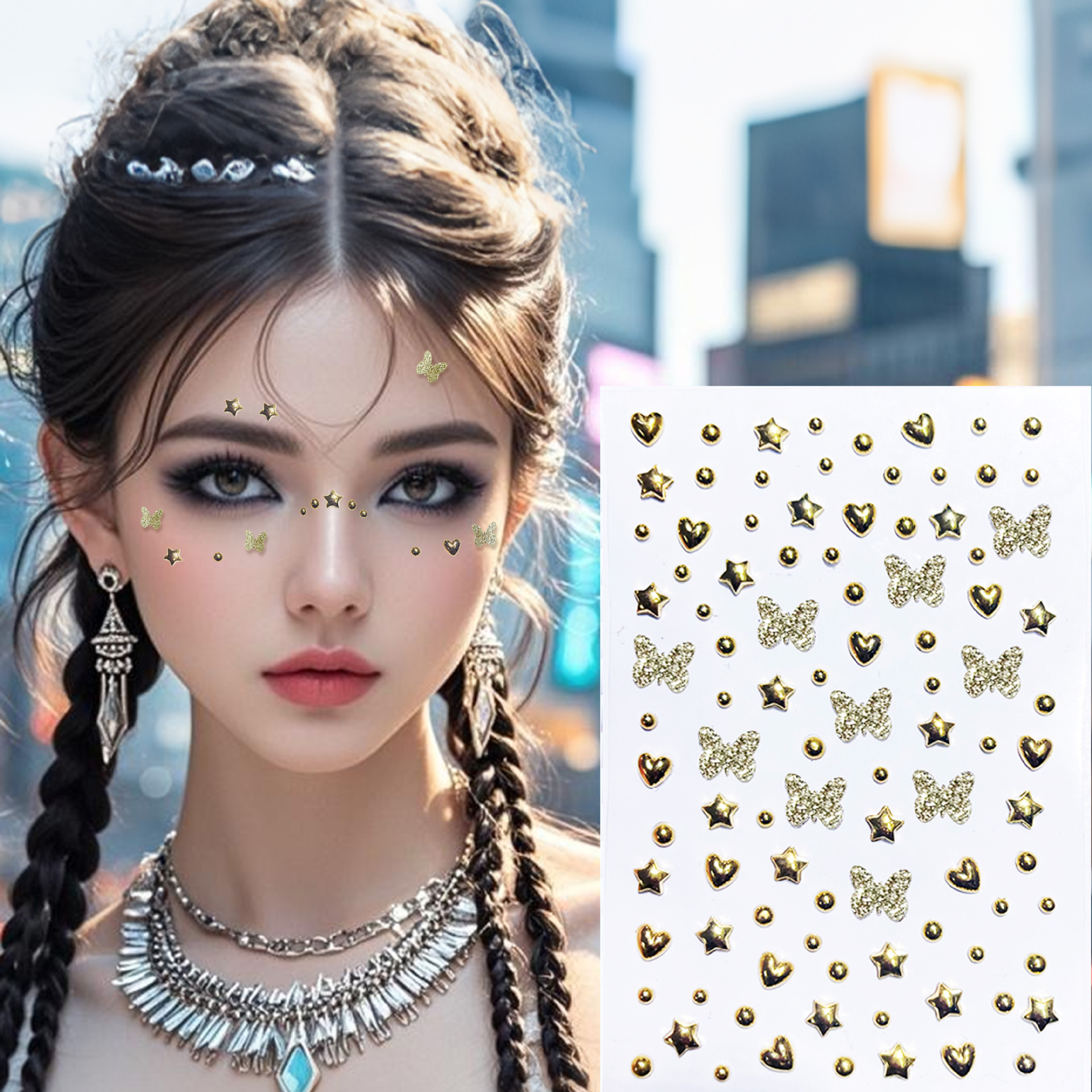 辣妹唇钉贴眉钉贴电镀金属色镂空蝴蝶镀银蝴蝶diy银半球珠钻贴脸