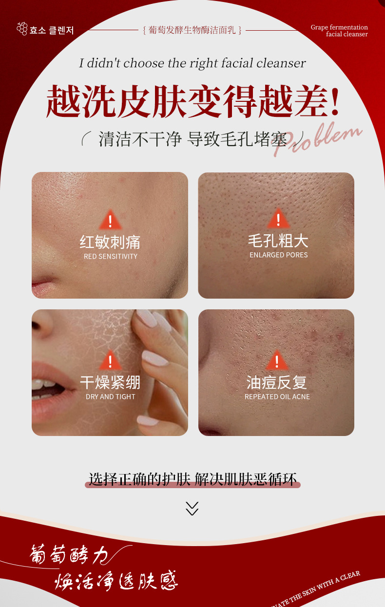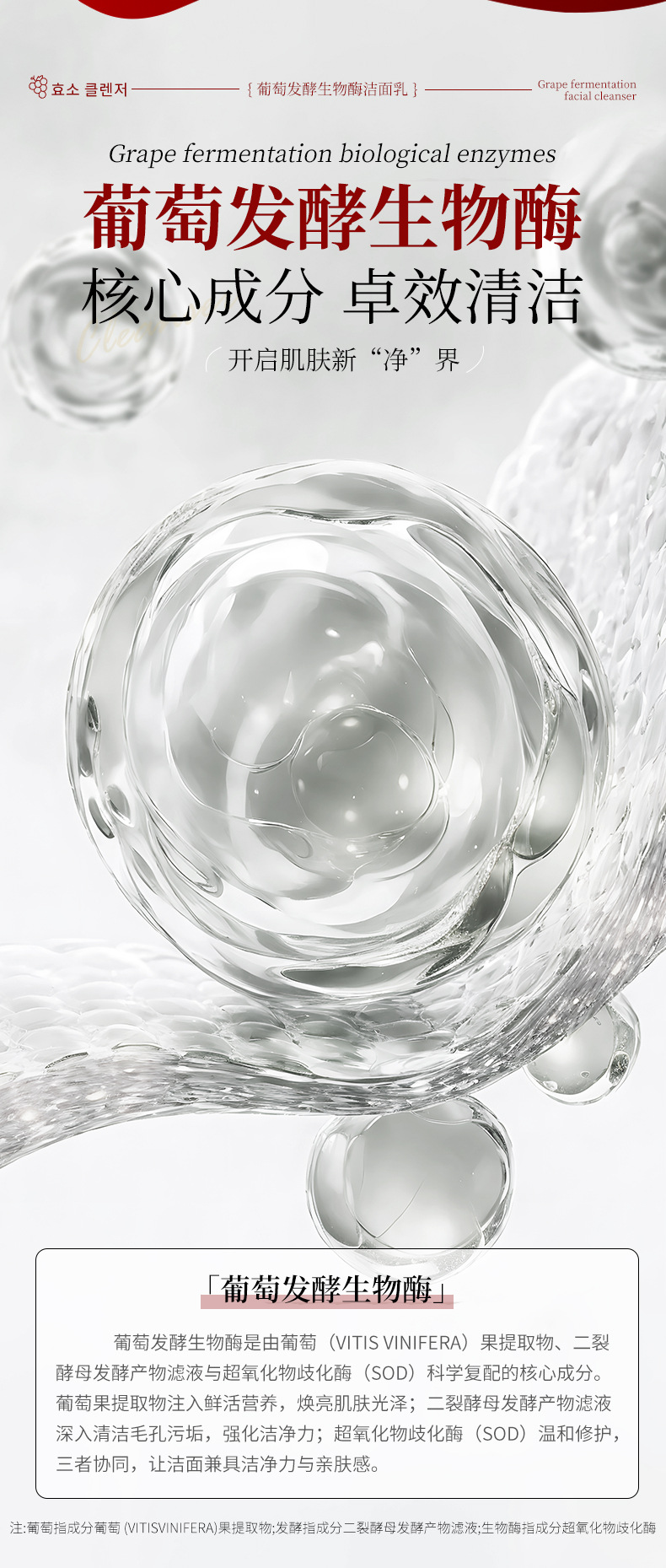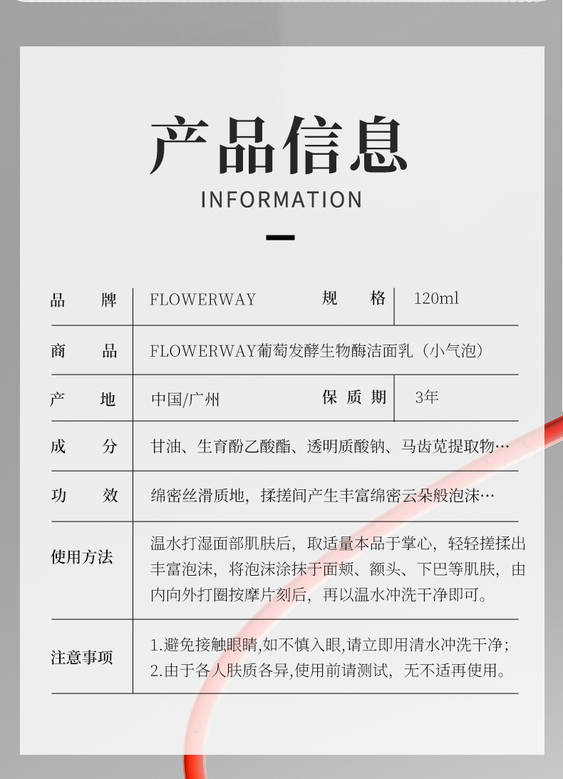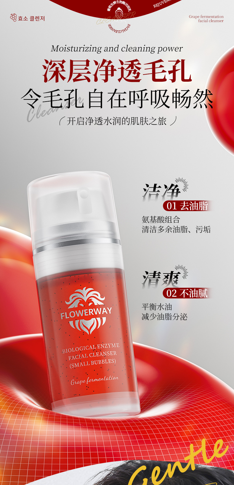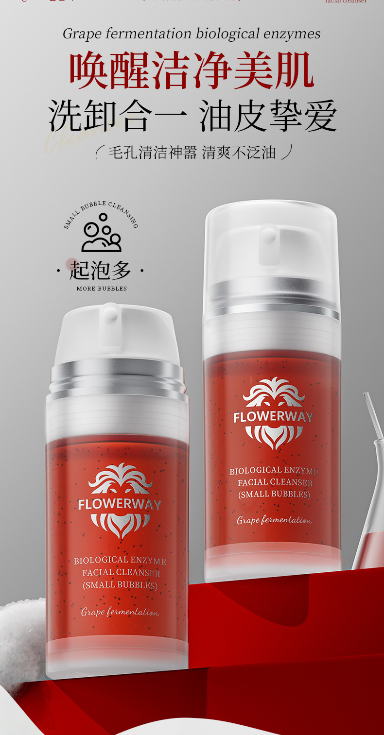 FLOWERWAY葡萄发酵生物酶洁面乳净透小气泡洗面奶温和清洁控油