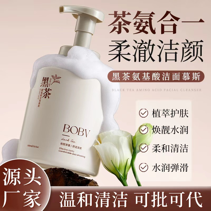 BOBV黑茶氨基酸洁面慕斯补水保湿清爽洁净可代发温和不刺激洗面奶