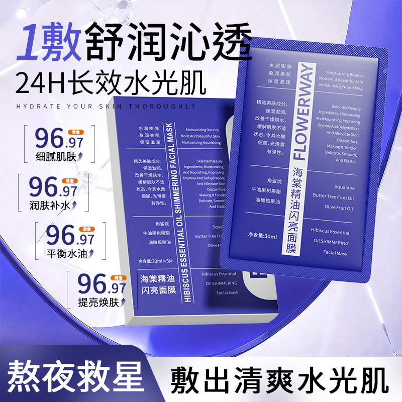 抖音爆款 FLOWERWAY海棠精油闪亮面膜补水保湿提靓肤色贴片面膜