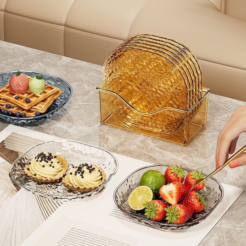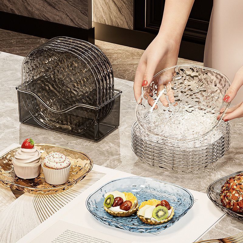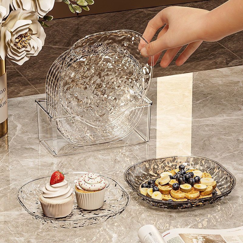 ライト高級氷河パターン家庭用骨吐き皿テーブルゴミ皿インターネット有名人透明デスクトップ骨吐き皿小皿セット