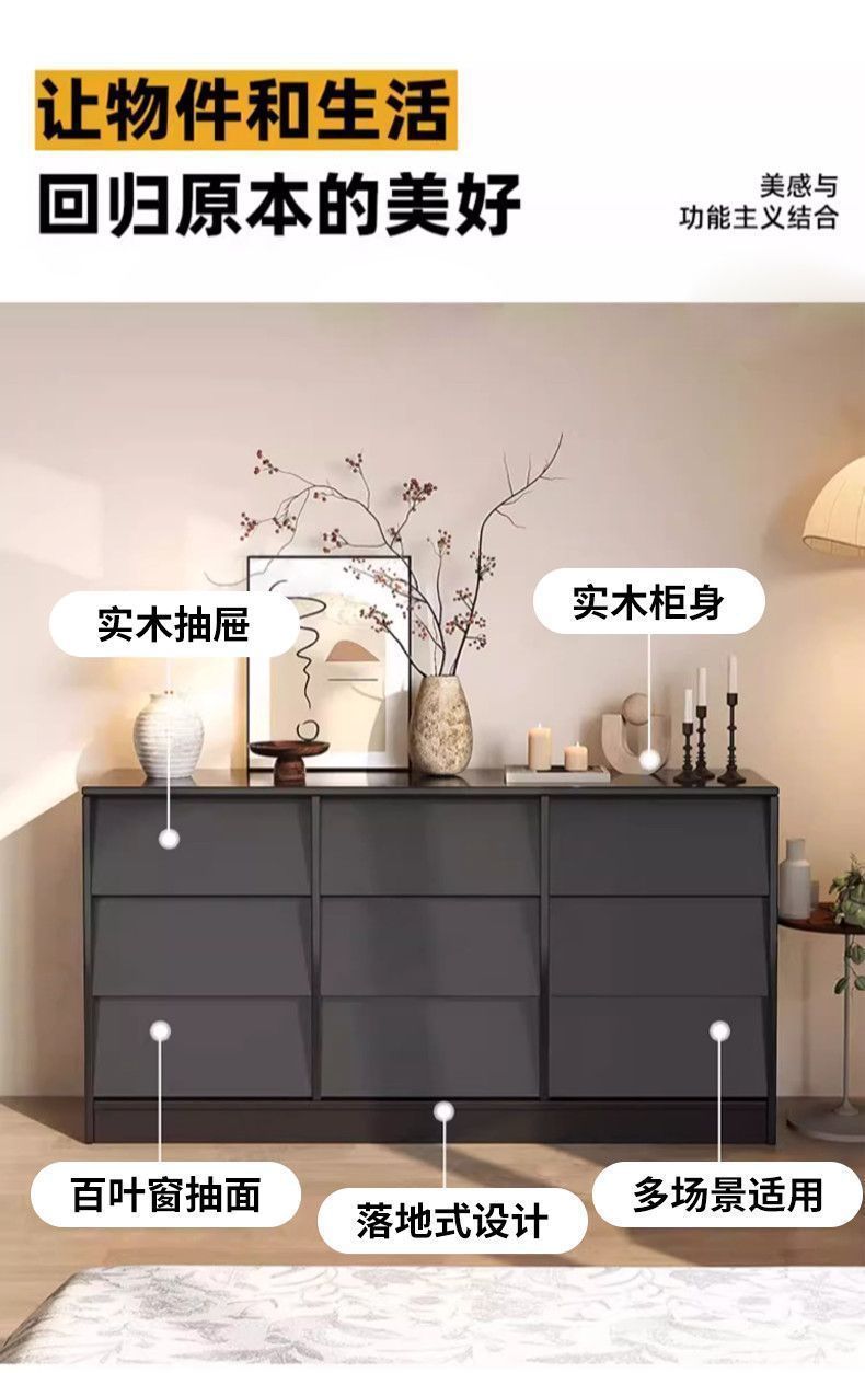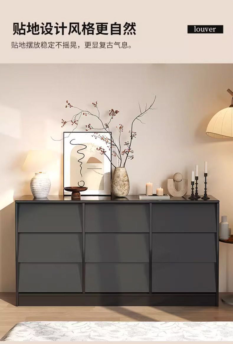 复古风百叶窗九斗柜家用复古落地多功能收纳柜储物柜实木卡门柜