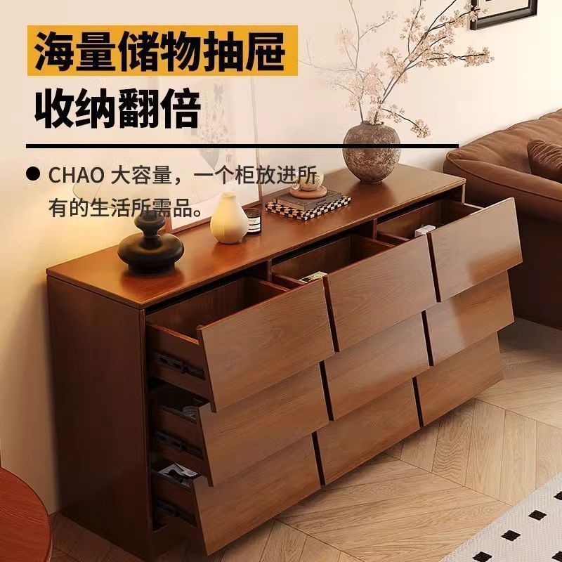 实木餐边柜一体靠墙收纳柜斗柜家用客厅茶水柜中古风柜子储物柜