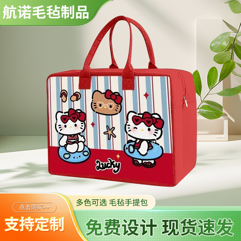 卡通毛毡旅行包收纳收纳袋大容量外出行李包拉杆箱可套必备国潮风