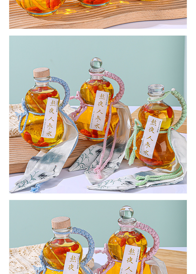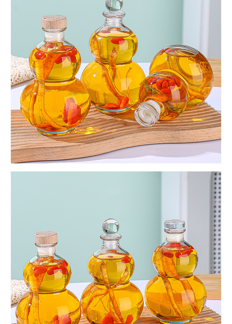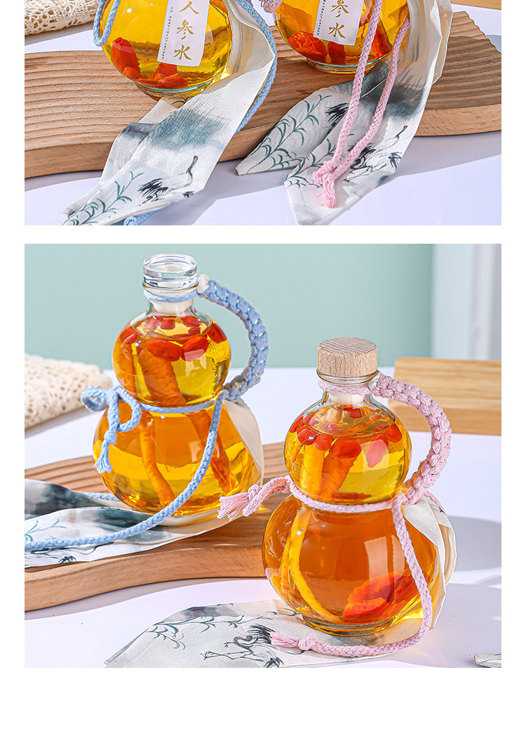 新しいスポットひょうたん空のワインボトル木製カバー高価値透明ガラスフラワーティードリンク空の高麗人参ワインボトル