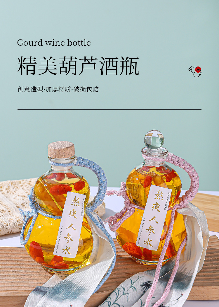 創意ひょうたんガラスボトル高颜値密封人参泡酒空酒瓶シンプル茶類飲料冷抽出茶瓶