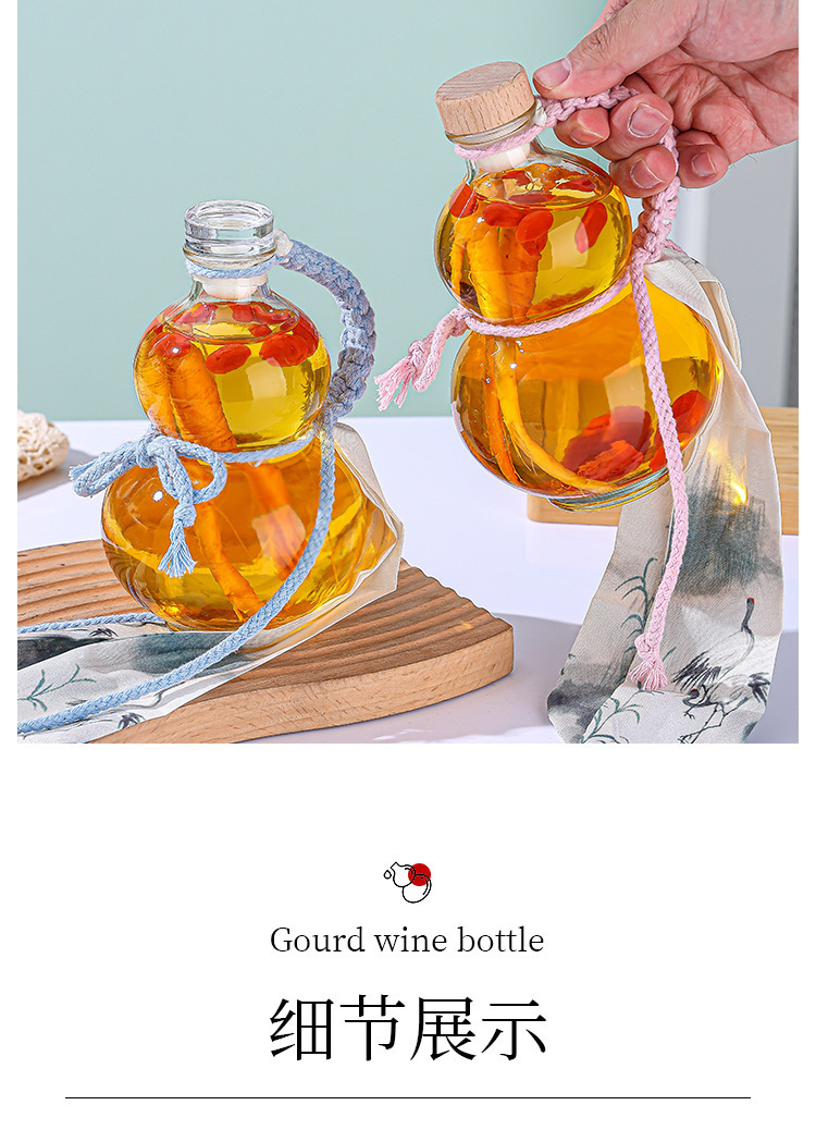 玻璃酒瓶葫芦瓶空瓶家用分装酒瓶果汁饮料密封食品级玻璃新款创意