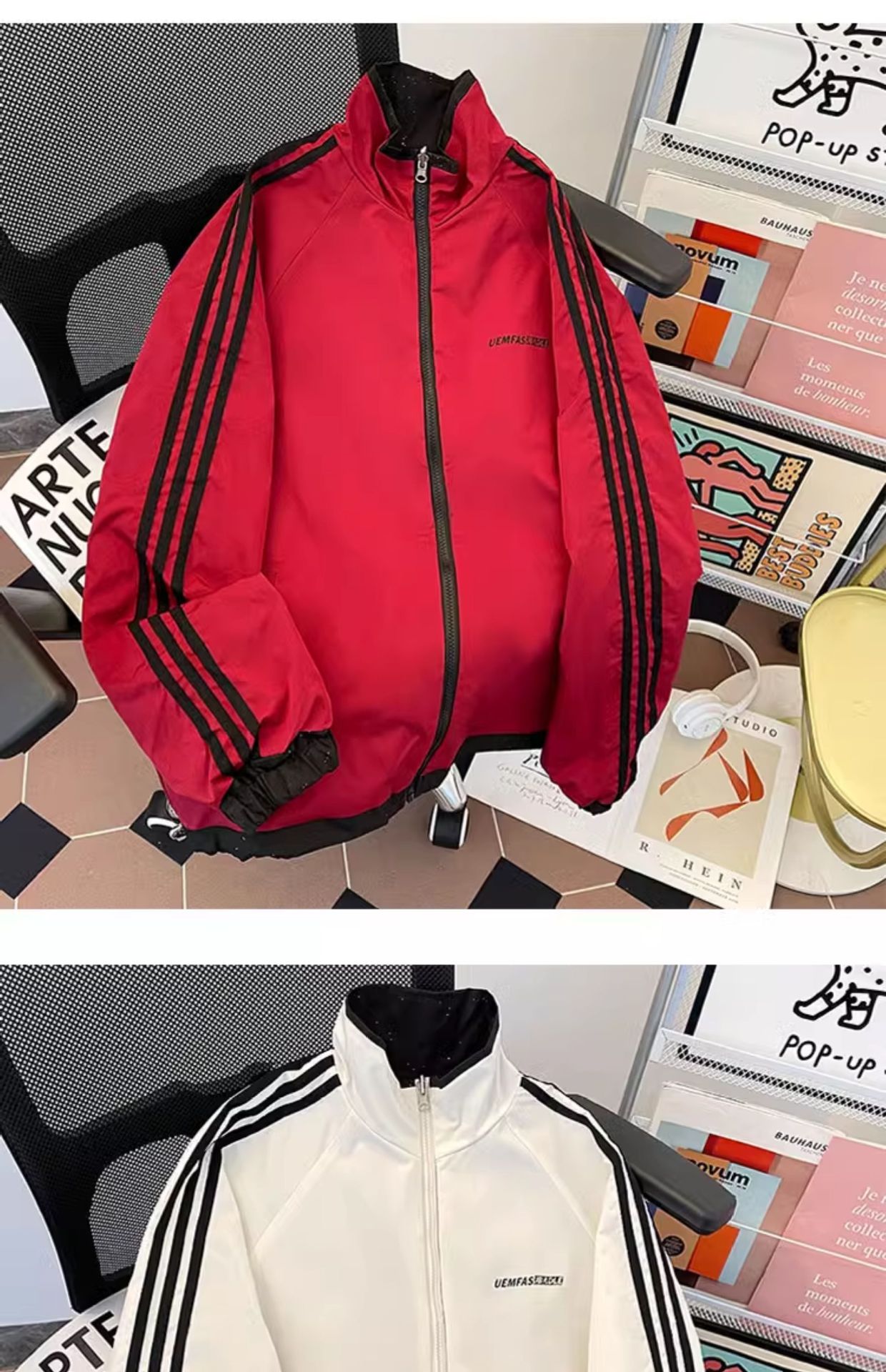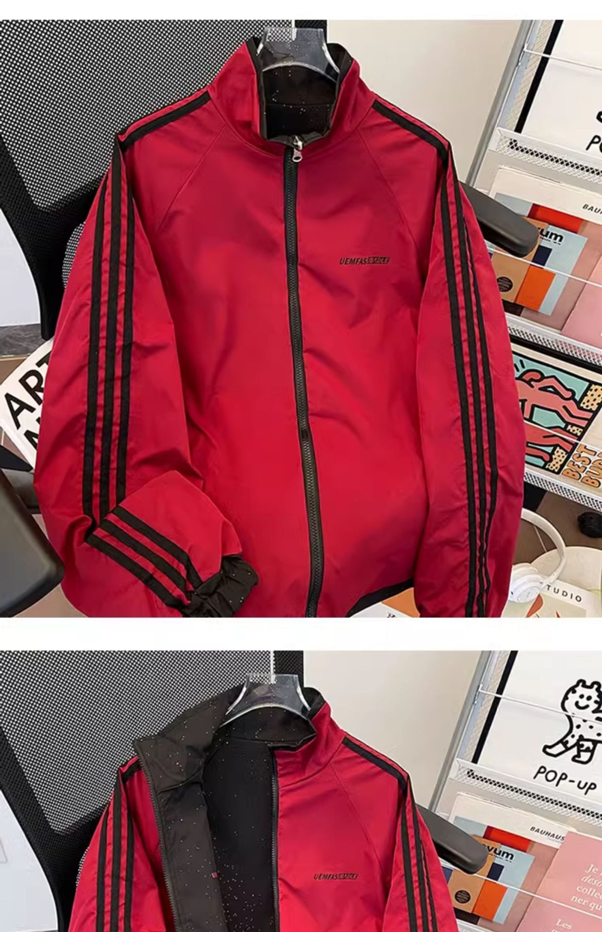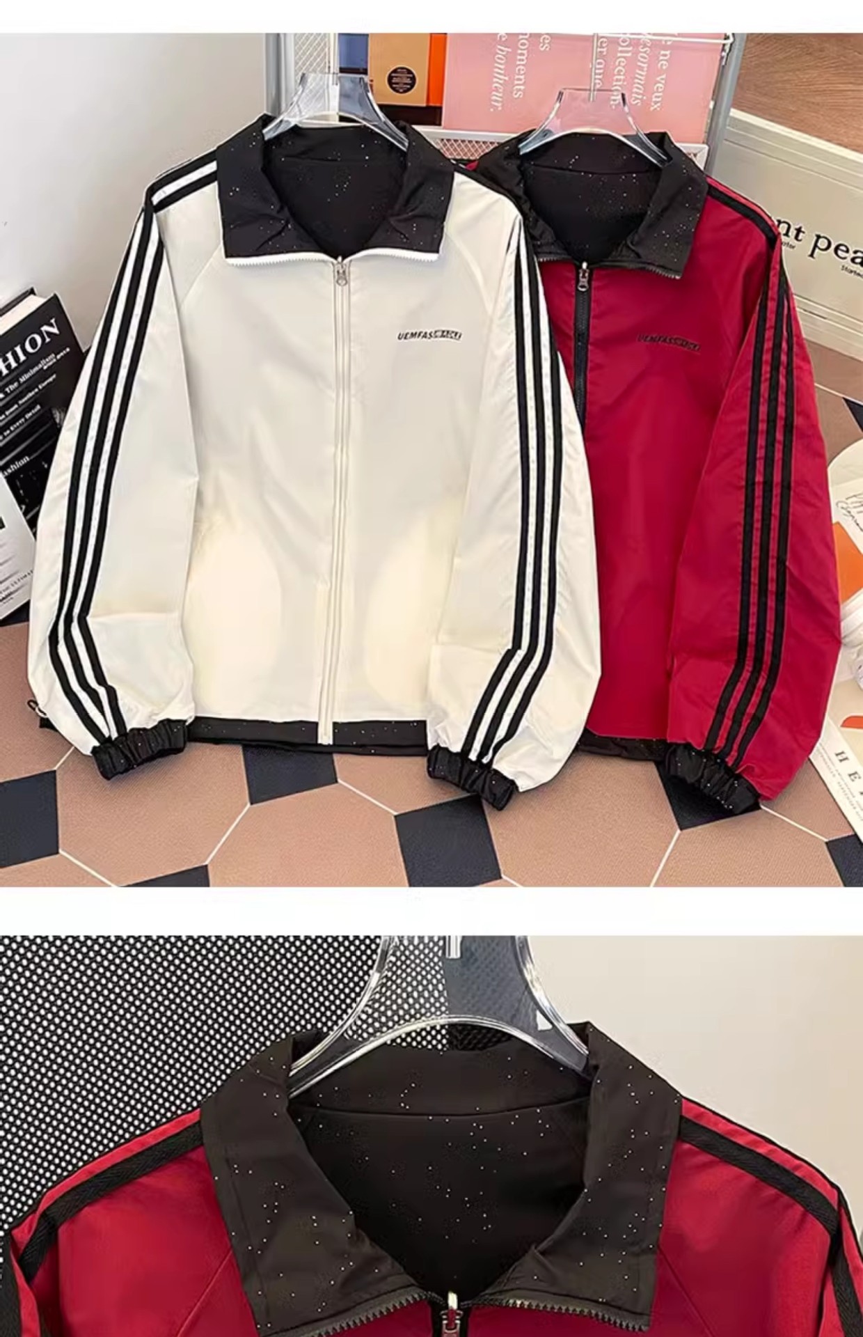2025 春と秋の新スタイルベビーブレスリバーシブルカップルジャケット男性と女性のための防風多用途ストライプジャケット