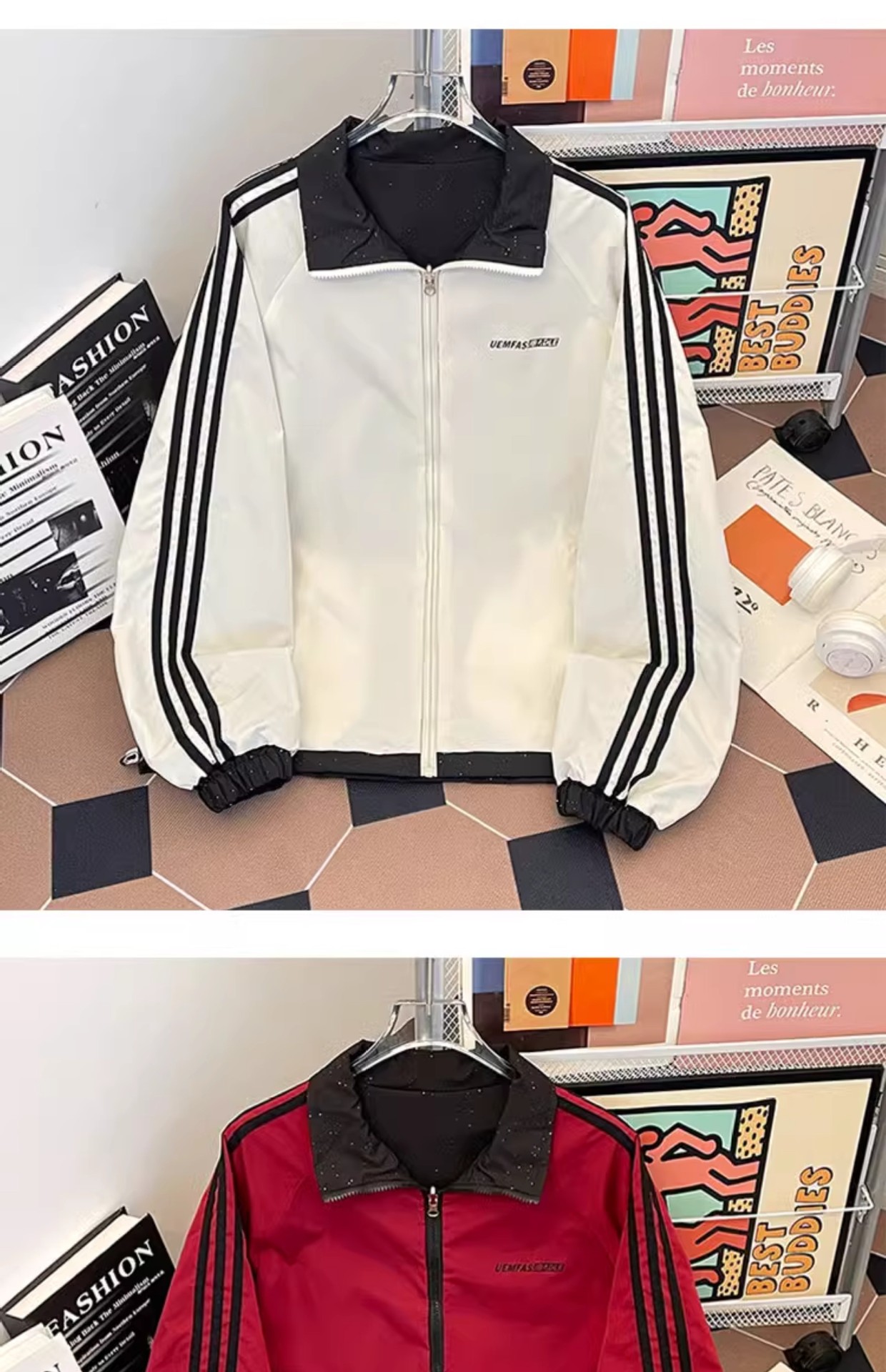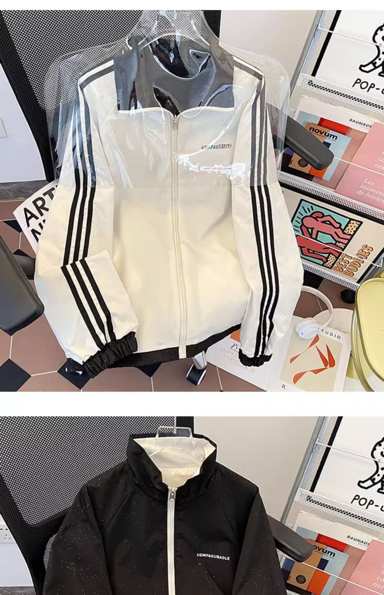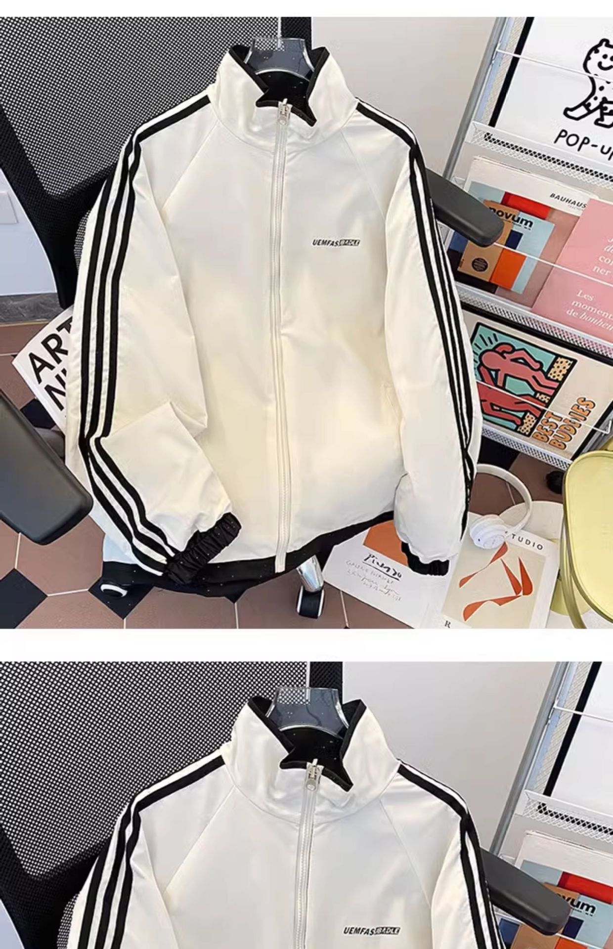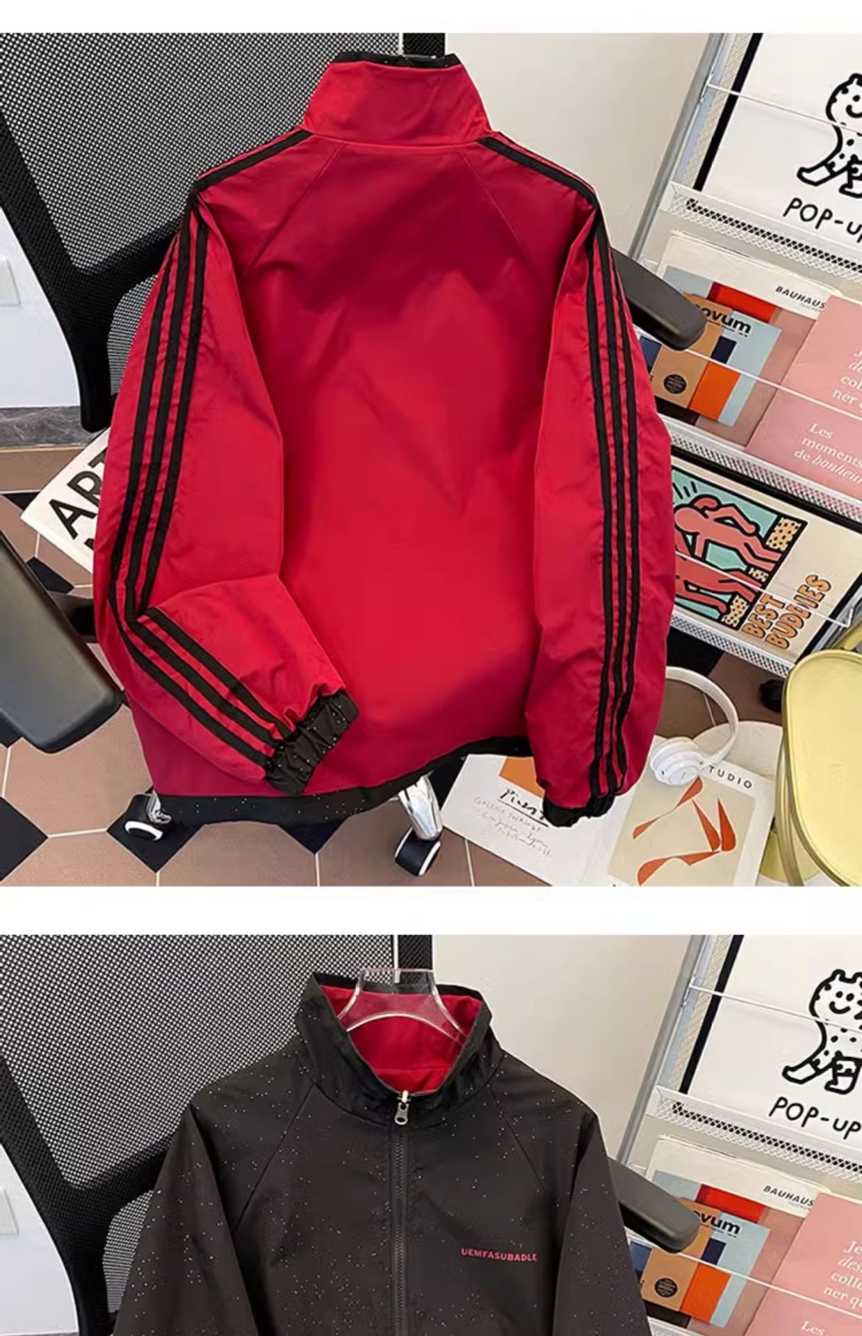 2025 春と秋の新スタイルベビーブレスリバーシブルカップルジャケット男性と女性のための防風多用途ストライプジャケット