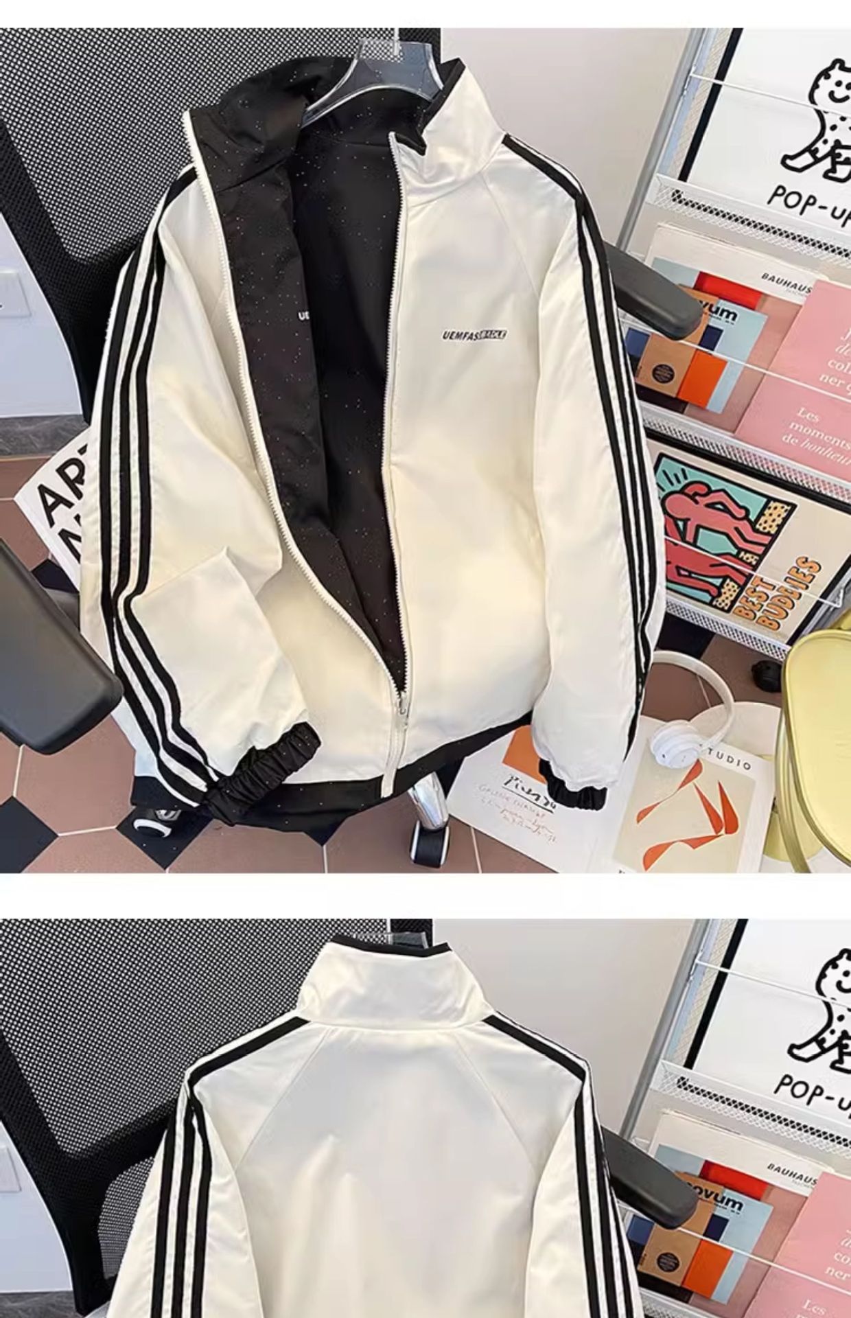 ベビーブレス リバーシブル カップル ジャケット 2025 春と秋の新作男性と女性の防風性と多用途のストライプ コットン ジャケット