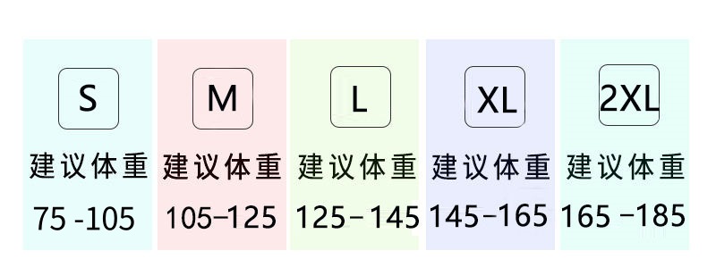 サイズ S (推奨 37.5-52.5kg ),M (推奨 52.5-62.5kg ),L (推奨 62.5-72.5kg ),XL (推奨 72.5-82.5kg),2XL (推奨 82.5-92.5kg )
