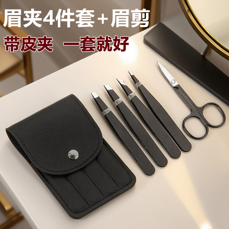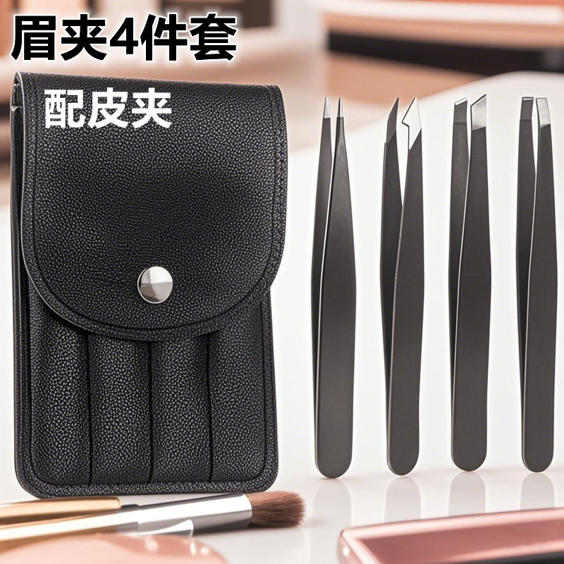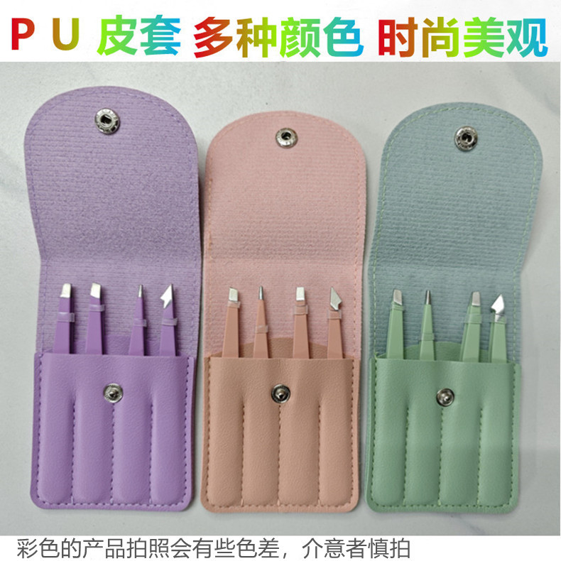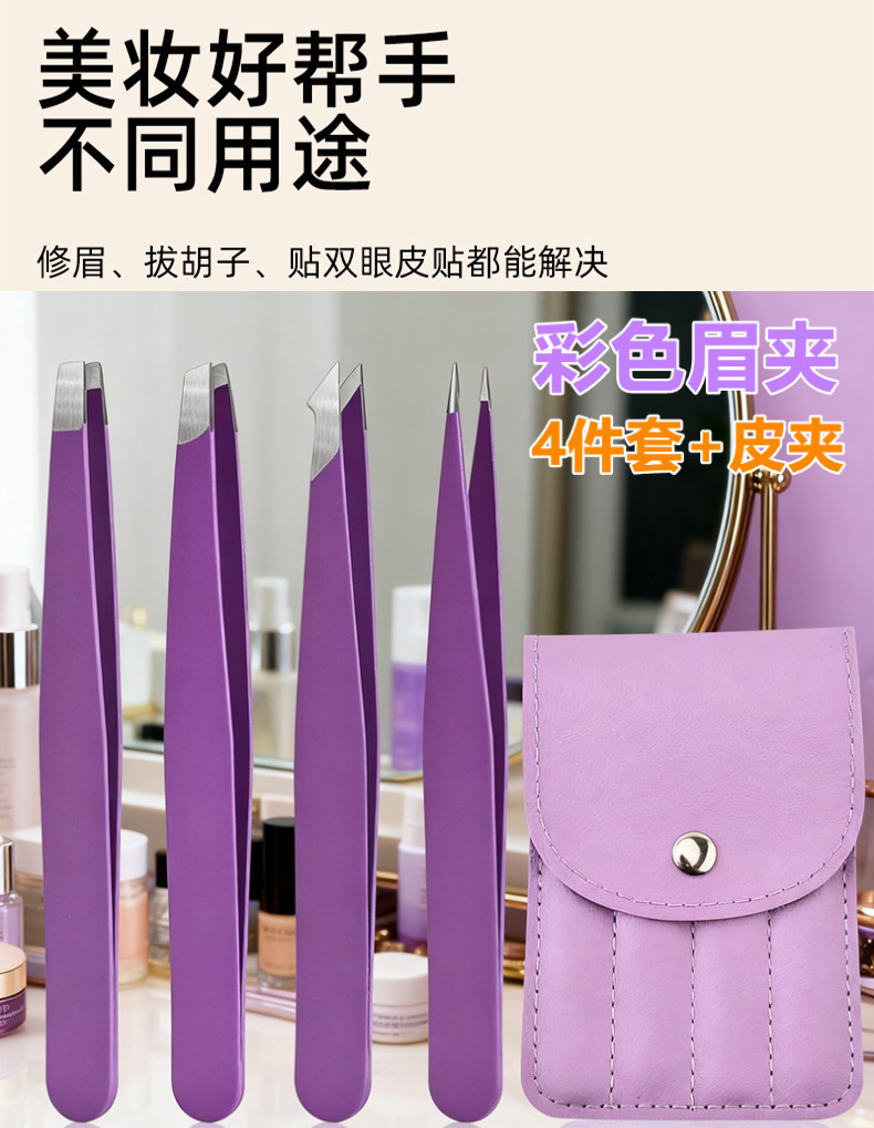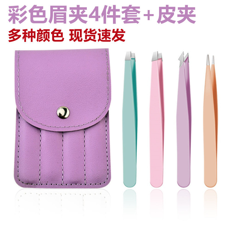 眉夹拔毛钳四件套不锈钢彩色修眉工具套装拔胡子眉毛夹镊子多功能