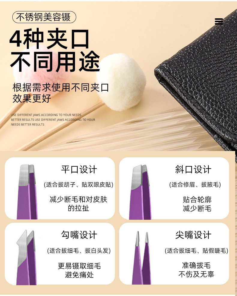眉毛夹子拔胡子男拔胡须夹神器女修眉美妆工具不锈钢斜口镊子眉夹